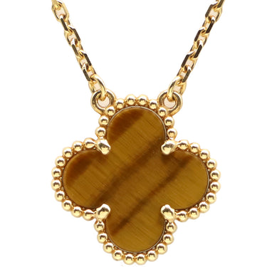 ヴァンクリーフアーペル Van Cleef & Arpels ヴィンテージ アルハンブラ タイガーアイ ブラウンXイエローゴールド K18YG タイガーアイ マザーオブパール ネックレス 750 18金