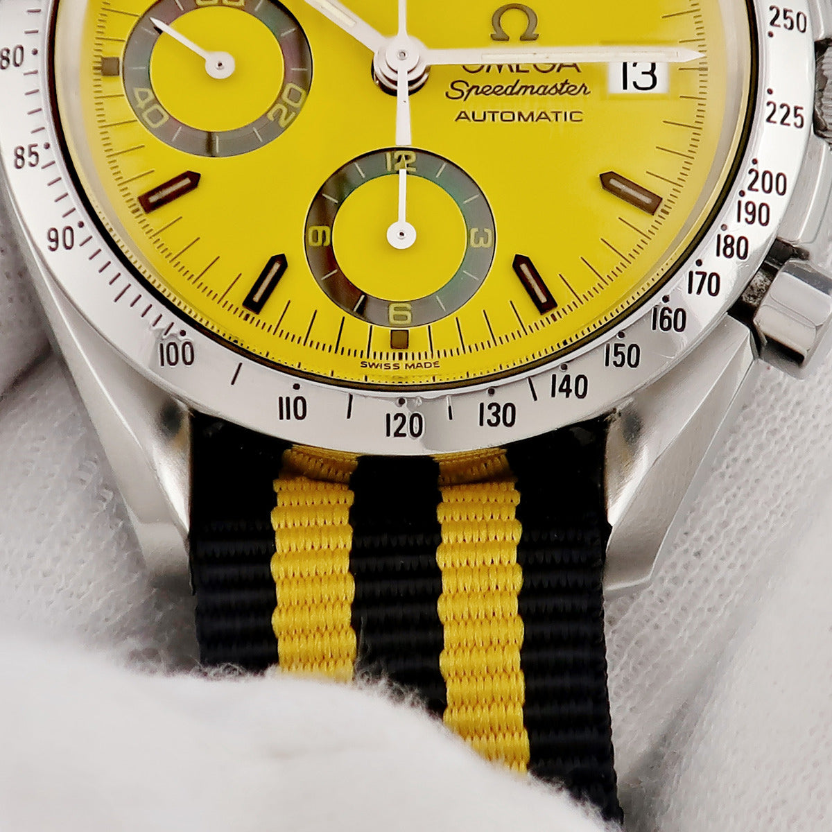 オメガ OMEGA スピードマスター デイト ミハエル シューマッハ 1stモデル 3511.12 自動巻き メンズ イエロー クロノグラフ