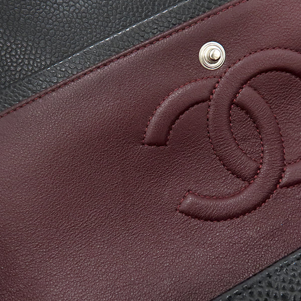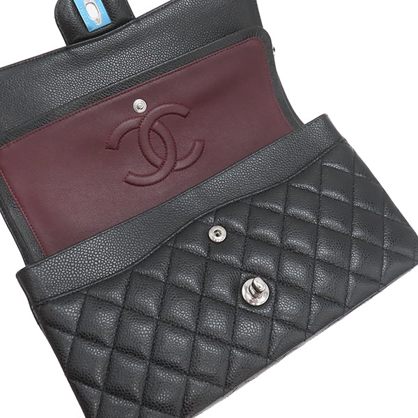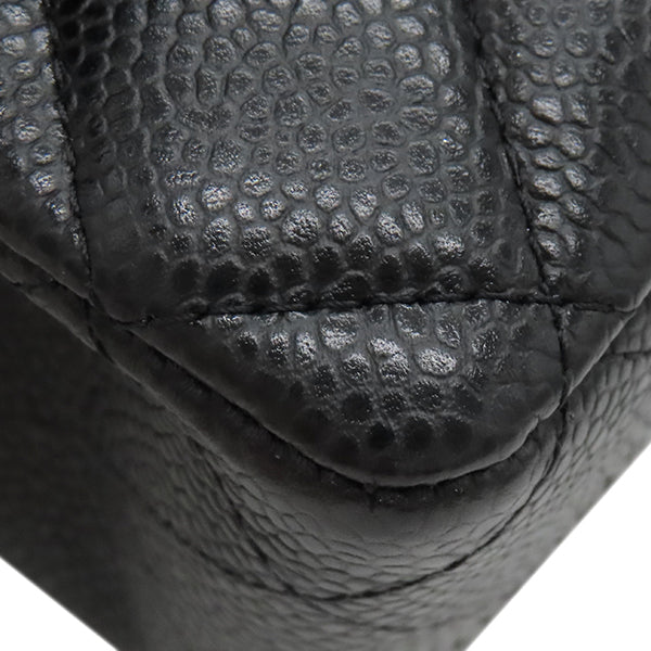 シャネル CHANEL マトラッセ 25 フラップバッグ A01112 ブラック キャビアスキン ショルダーバッグ シルバー金具 黒 ダブルフラップ ダブルチェーン Wチェーン