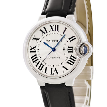 カルティエ Cartier バロンブルー 36mm W69017Z4 自動巻き メンズ シルバー ギヨシェ 青針 ブルースティール ローマン