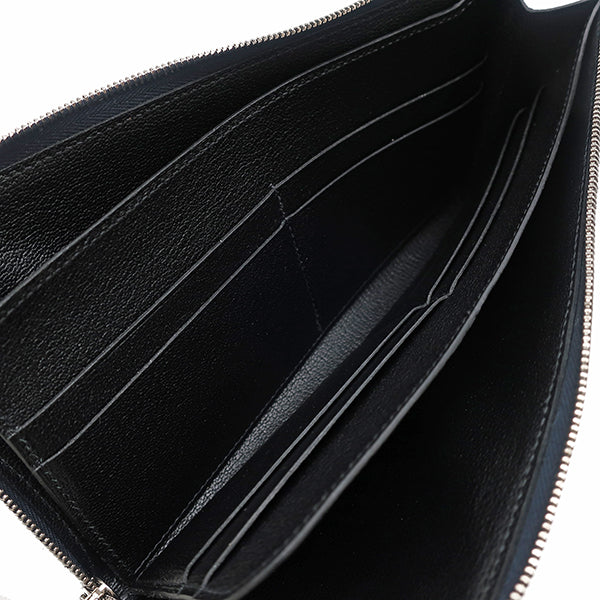 エルメス HERMES リミックスコンバイン ブルーニュイ×ヴェールアングレ ヴォーエプソン 長財布 シルバー金具 紺 緑 L字ファスナー