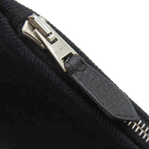 エルメス HERMES ヴァルパライソ ロング MM ブラック トワルシェブロン レザー ハンドバッグ シルバー金具 黒