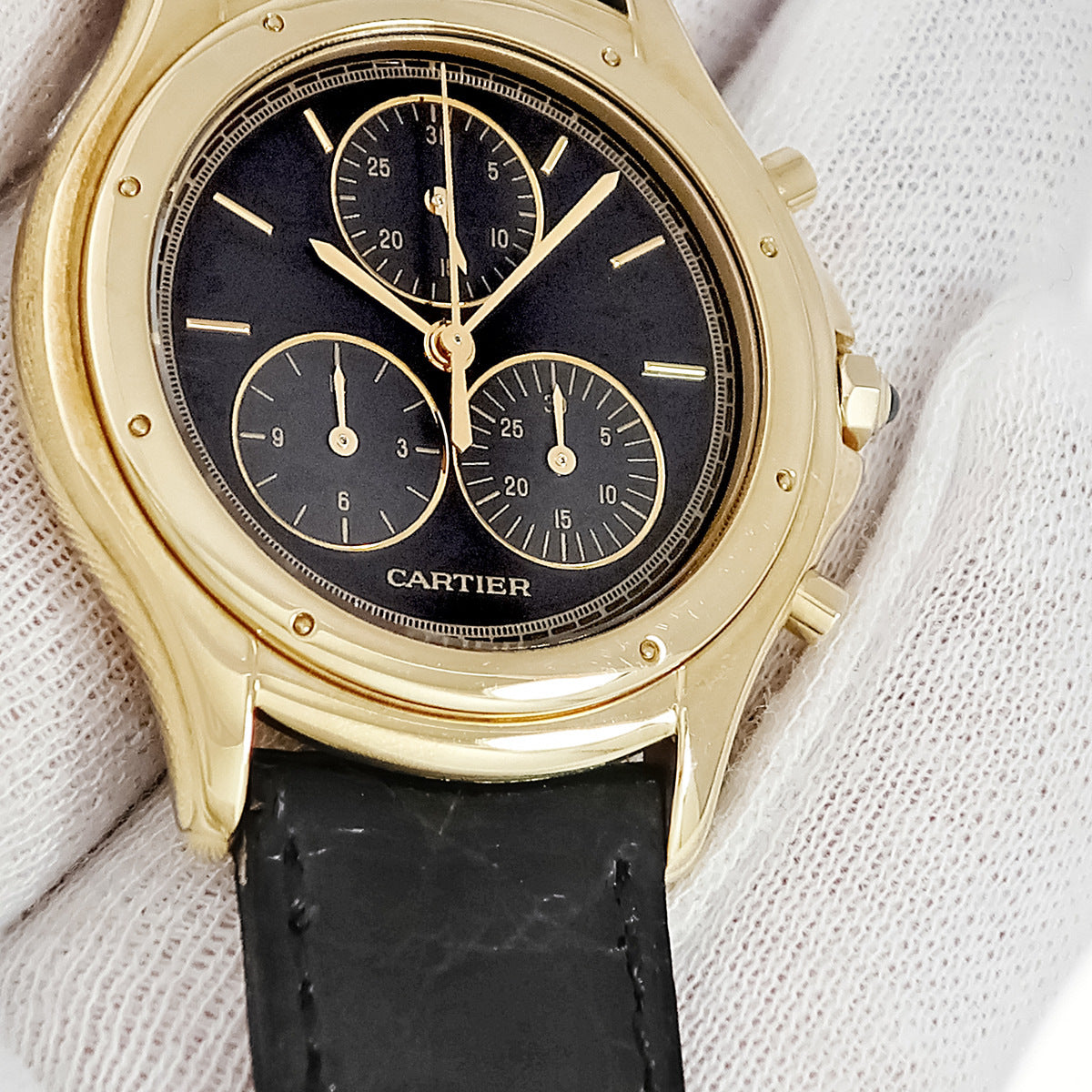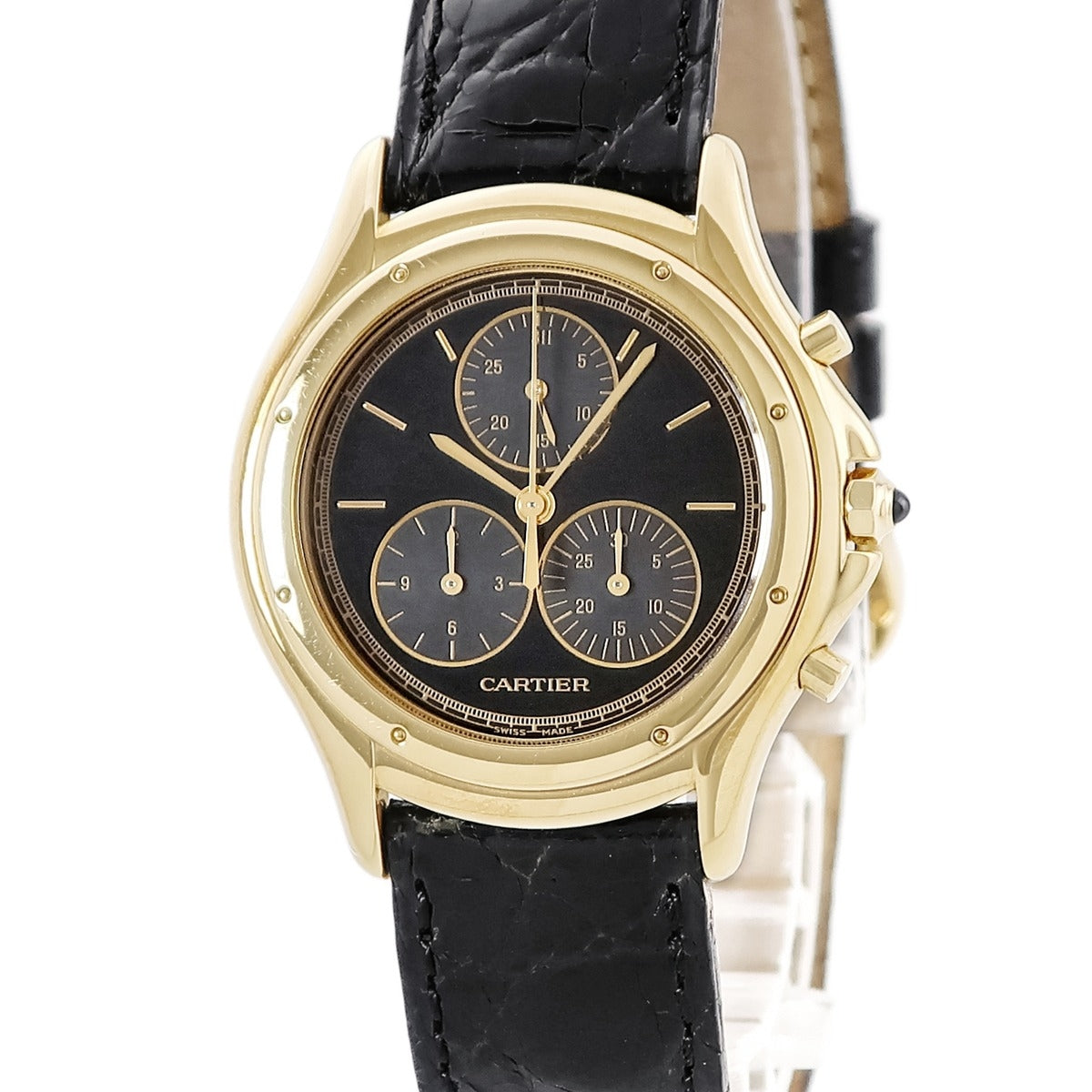 カルティエ Cartier クーガー LM クロノリフレックス W3500851 クオーツ メンズ レディース K18YG無垢 ブラック 黒 デイト