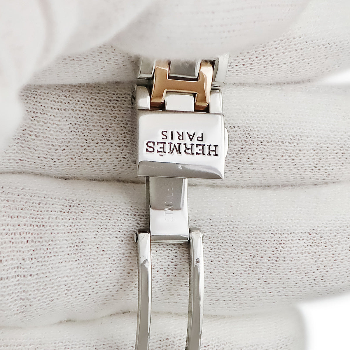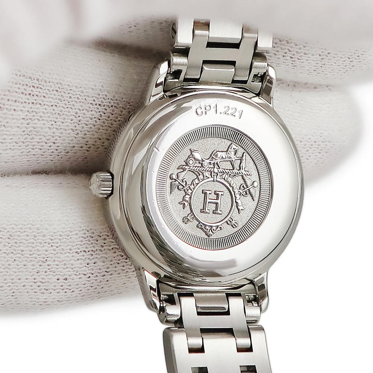 エルメス HERMES クリッパー ナクレ CP1.221 クオーツ レディース ピンクGP×SS シェル デイト アラビア