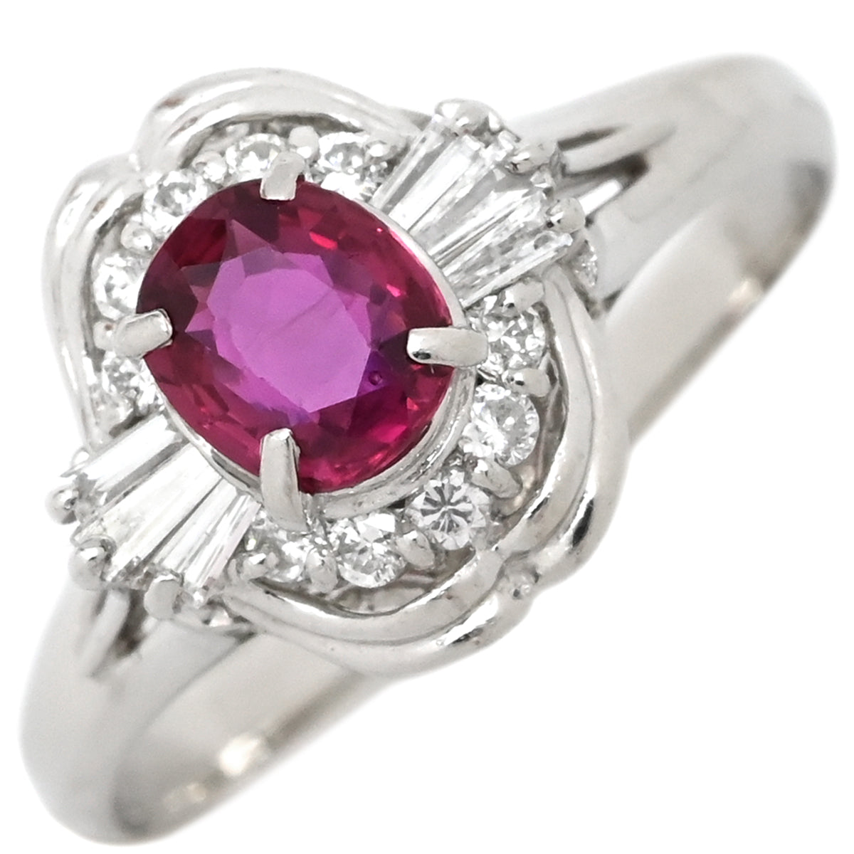 ノンブランド NON BRAND ルビー ダイヤリング プラチナシルバー リング 指輪 レッド 赤 13号