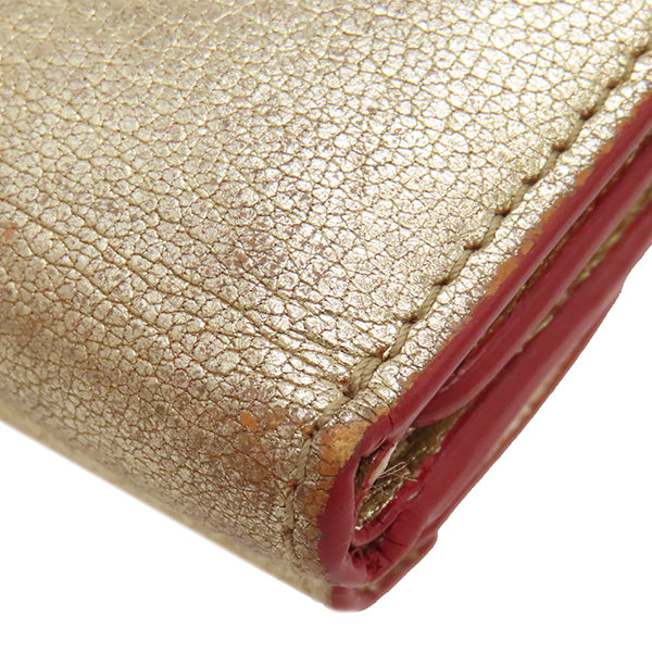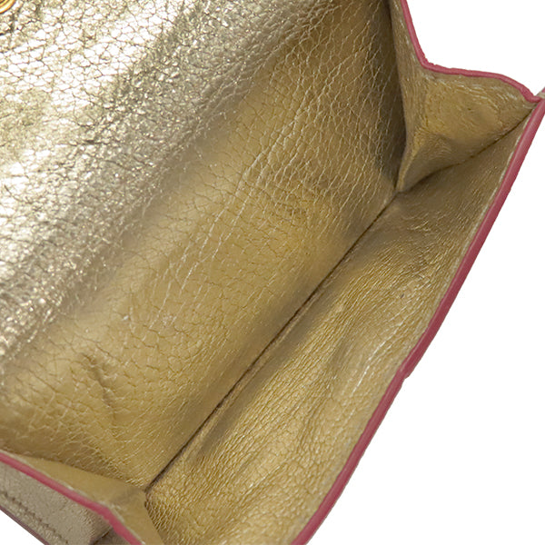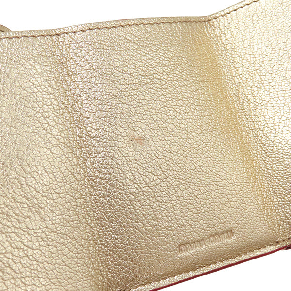 ミュウミュウ MIU MIU MADRAS LOVE マドラス ラブ 5MH021 ゴールド×レッド レザー 三つ折り財布 ゴールド金具 金 赤 コンパクト