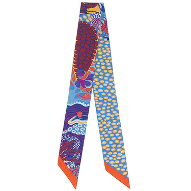 エルメス HERMES ツイリー オレンジ×ブルー×ブラウン シルク スカーフ 【UNDER THE WAVES/アンダー ザ ウェーブ】