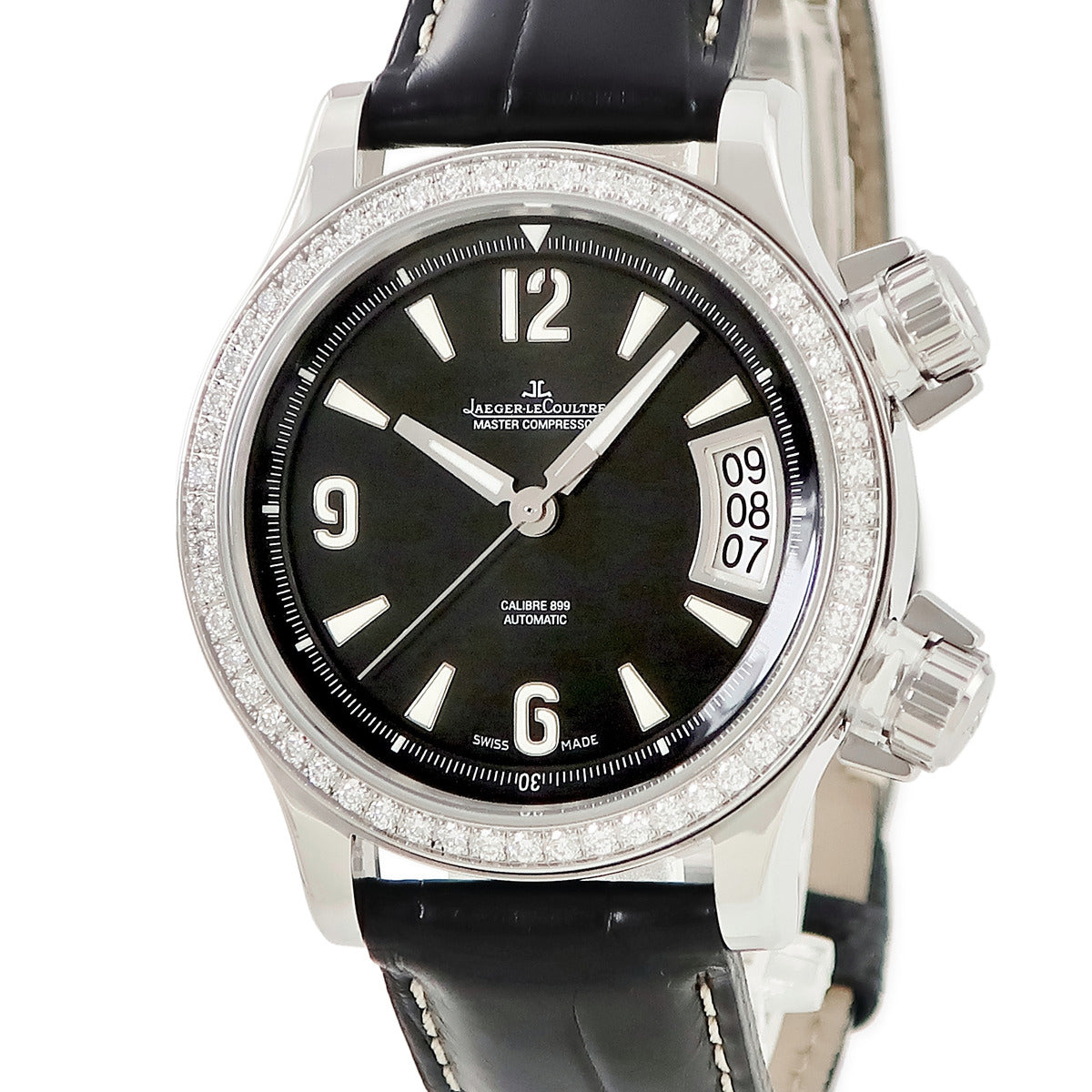 ジャガールクルト JAEGER LECOULTRE マスター コンプレッサー レディ 148.8.37 自動巻き レディース 純正ダイヤ デイト ブラック 黒