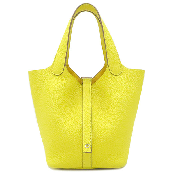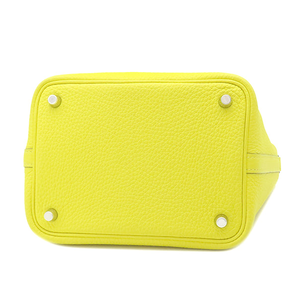 エルメス HERMES ピコタンロックPM ライム トリヨンクレマンス ハンドバッグ シルバー金具 黄色