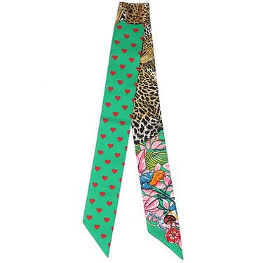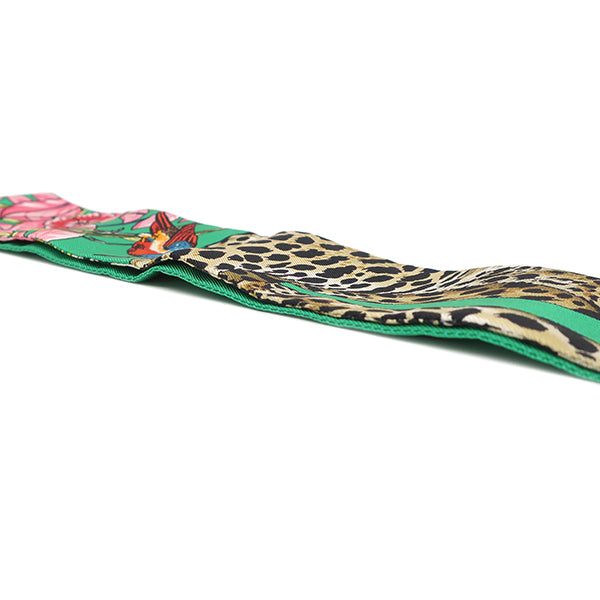 エルメス HERMES ツイリー エメラルド×ローズ×ブラウン シルク スカーフ 【JUNGLE LOVE LOVE/ジャングル ラブ ラブ】