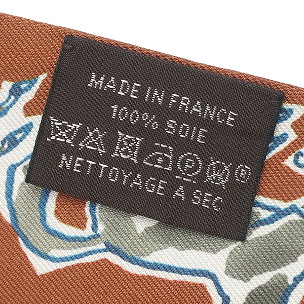 エルメス HERMES ツイリー キャラメル×カーキ×ホワイト シルク スカーフ 【CHEVAUX EN LIBERTE/自由の馬】