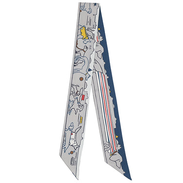 エルメス HERMES ツイリー グリペール×ブルー×ジョーヌ シルク スカーフ 【LES CHIENS PARISIENS/パリジャンの犬】