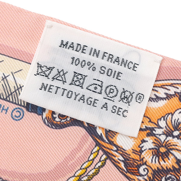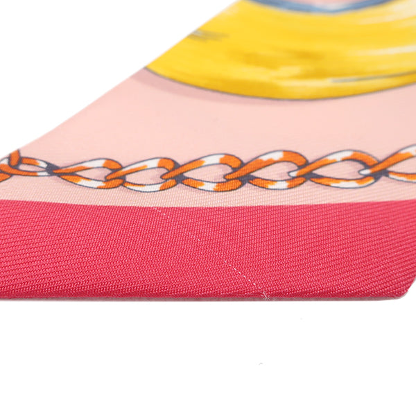 エルメス HERMES ツイリー ローズ プードル×ジョーヌ シルク スカーフ 【CAVALCADES/騎馬行進】