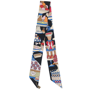 エルメス HERMES ツイリー ブラック×ホワイト×ブルー シルク スカーフ 【LA PATISSERIE FRANCAISE CHARM/パティスリーフランセーズチャーム】