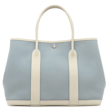 エルメス HERMES ガーデンパーティーPM ブルーリン×クレ トワルオフィシエ ネゴンダ トートバッグ シルバー金具 水色 オフホワイト