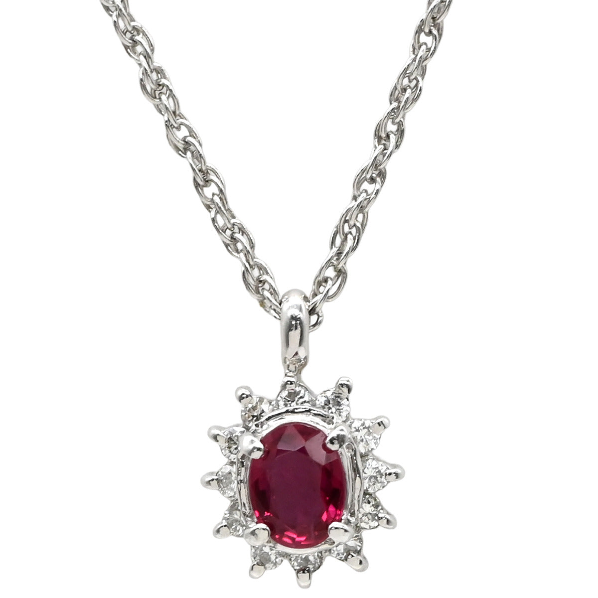 ノンブランド NON BRAND ルビー ダイヤペンダント プラチナシルバー ネックレス 赤