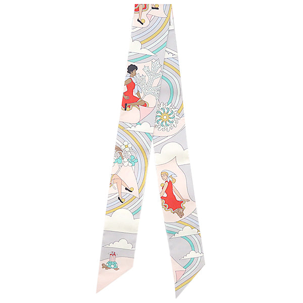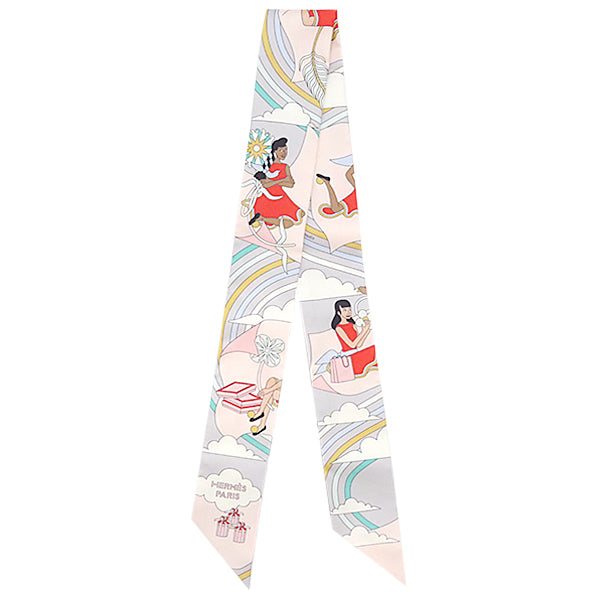 エルメス HERMES ツイリー グリスパール×ローズペール×グレナディン シルク スカーフ 新品 未使用【CARRES VOLANTS/空飛ぶカレ】