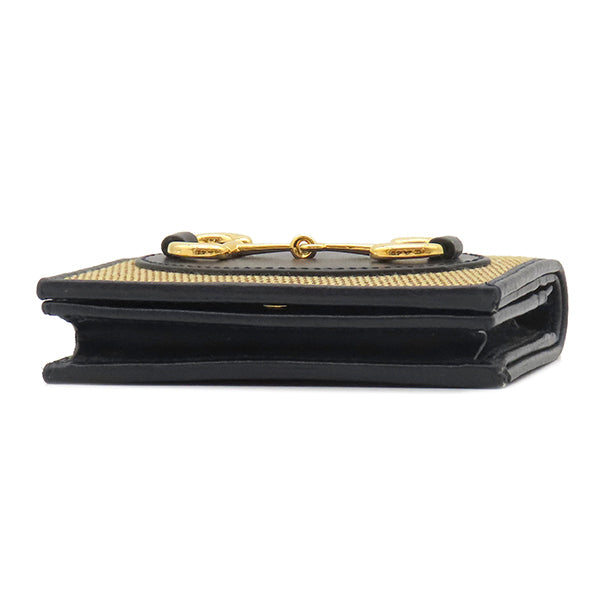 グッチ GUCCI ホースビット 1955 カードケース 621887 ベージュ×ネイビー キャンバス レザー 二つ折り財布 ゴールド金具 紺 コンパクトウォレット