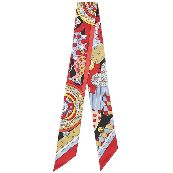 エルメス HERMES ツイリー ルージュ×エベンヌ×マルチカラー シルク スカーフ 【LES MURMURES DE LA FORET/森のささやき】
