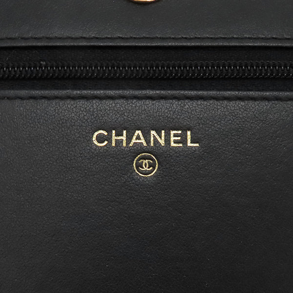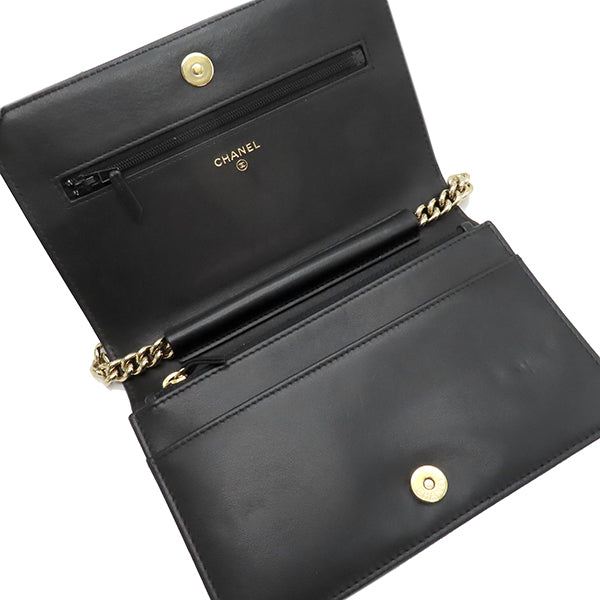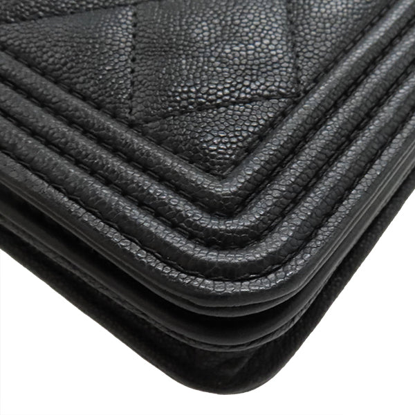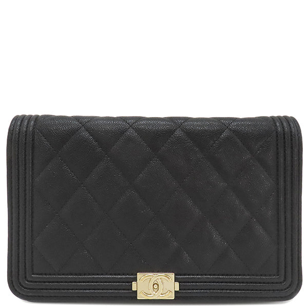 シャネル CHANEL ボーイシャネル ブラック キャビアスキン チェーンウォレット シャンパンゴールド金具 黒 チェーンショルダー