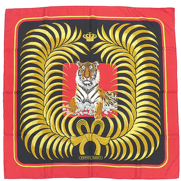 エルメス HERMES カレ90 CARRE レッド×ブラック×イエロー シルク スカーフ 【Tigre Royal/王者の虎】