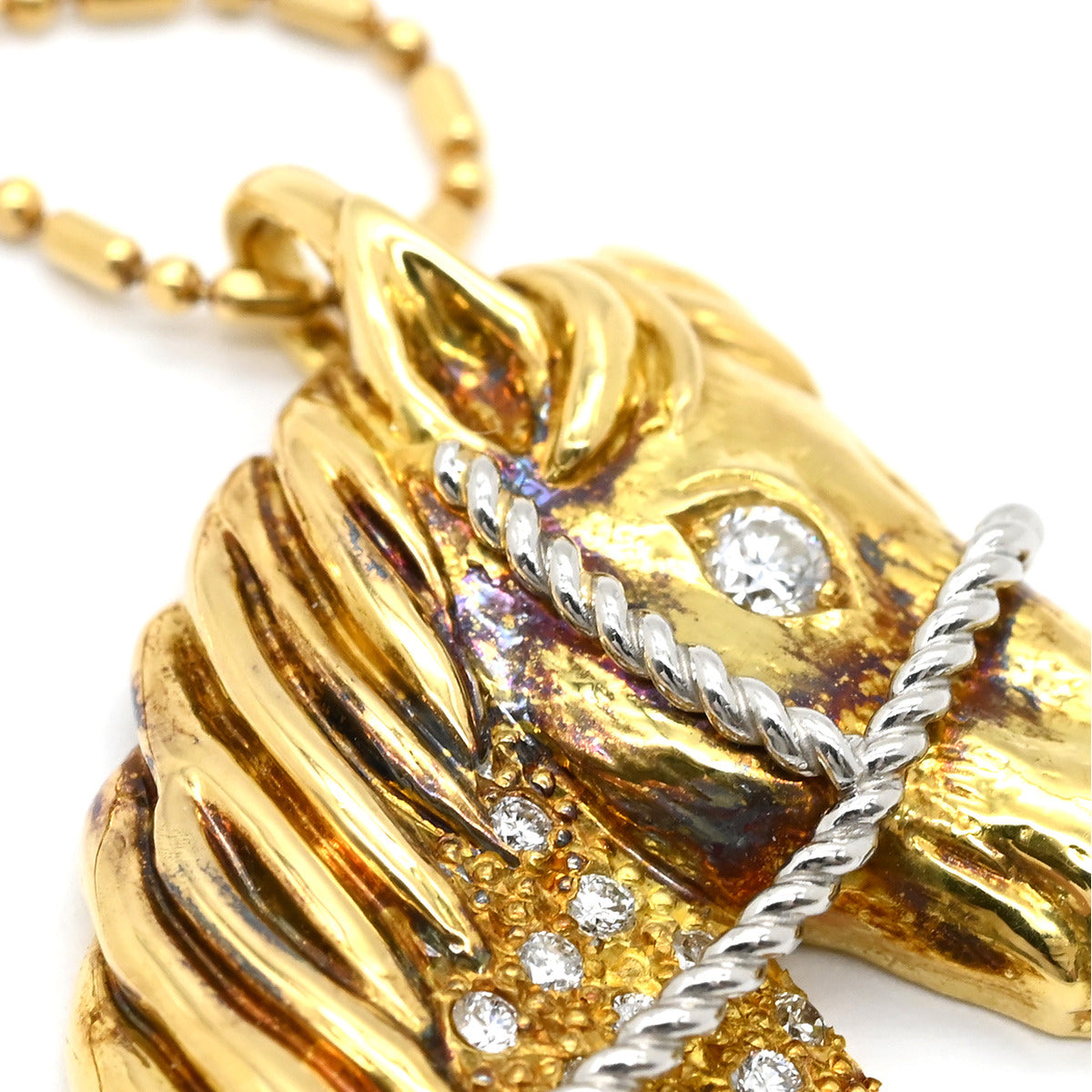 ルーブルーゼ LOUVROUSE ホース モチーフ ダイヤモンド イエローゴールド×プラチナシルバー ネックレス 馬 YG Pt コンビ