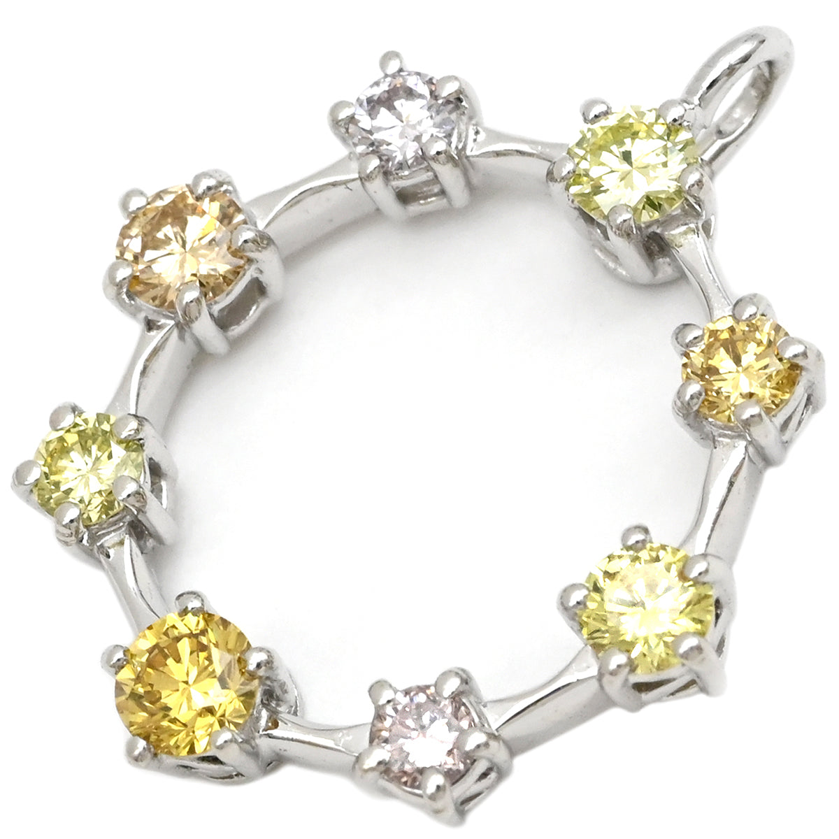 ノンブランド NON BRAND ホワイトゴールド ペンダントトップ イエロー ブラウン ピンク 8P 8石 8粒 色石 Au750 18K 18金 マルチカラーストーン チャーム
