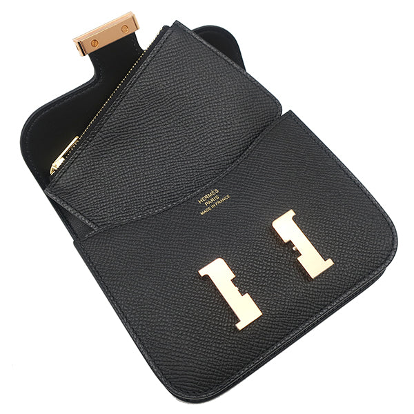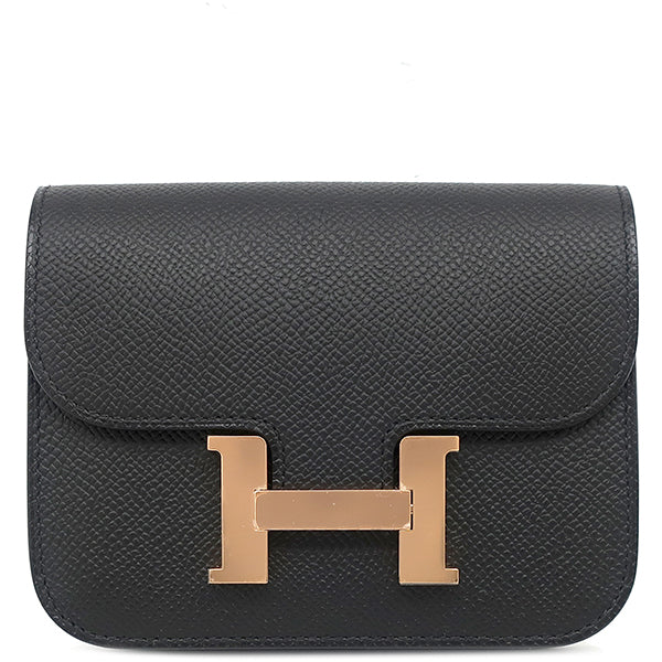 エルメス HERMES コンスタンス スリム ウォレット ブラック ヴォーエプソン 二つ折り財布 ローズゴールド金具 新品 未使用 黒 RG金具 PG金具