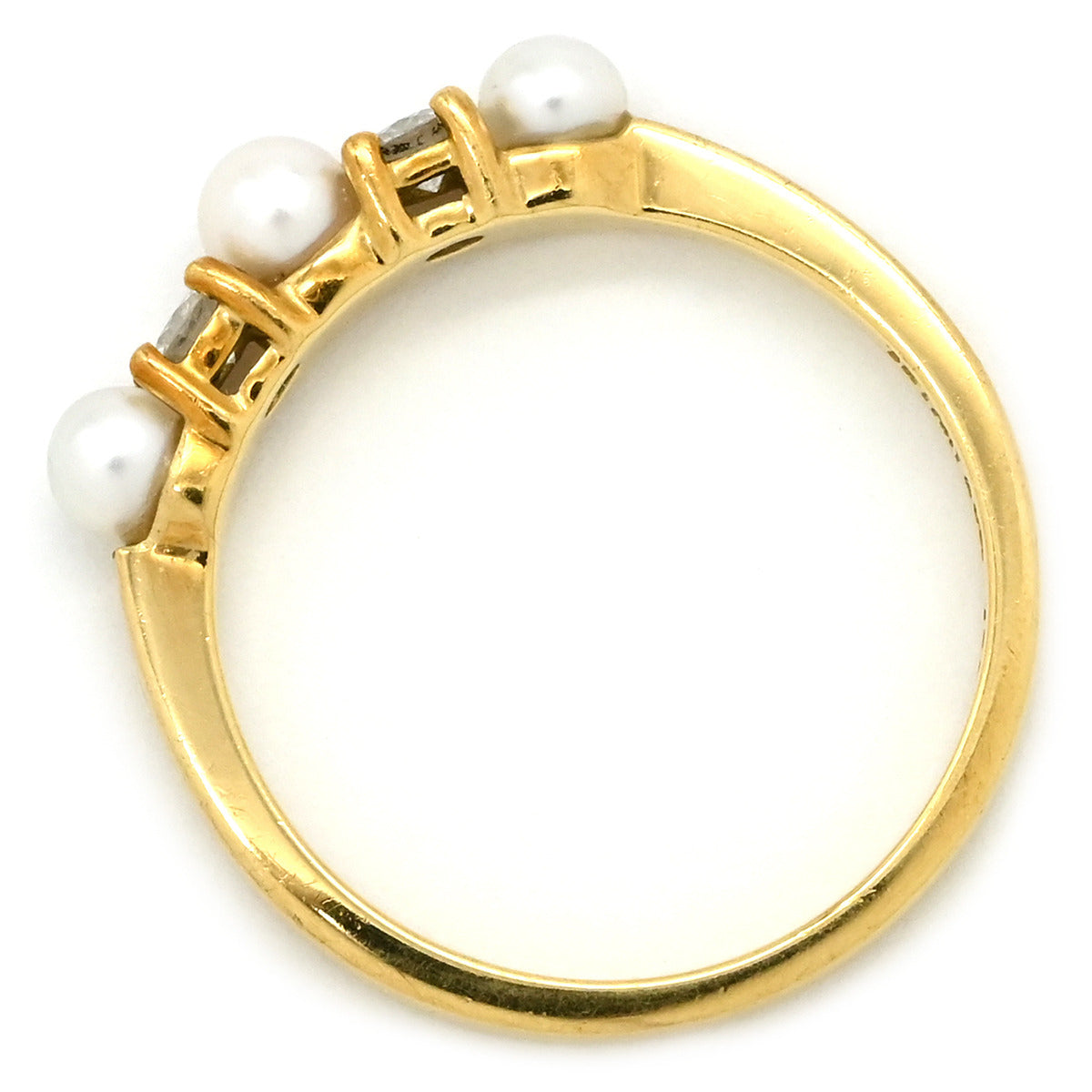 ティファニー Tiffany & Co イエローゴールド K18YG ダイヤモンド パール リング 指輪 T&Co. Au750 18K 18金 2P 2石 2粒 ダイヤ ベビーパール 真珠 10号