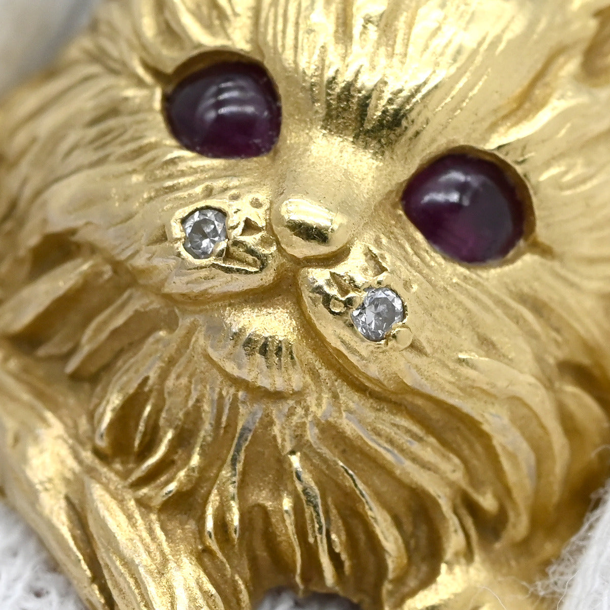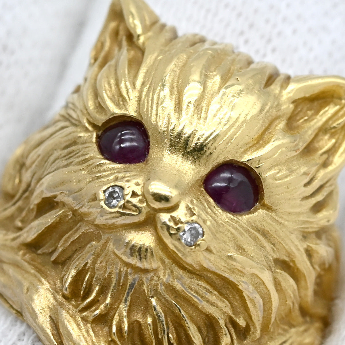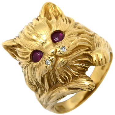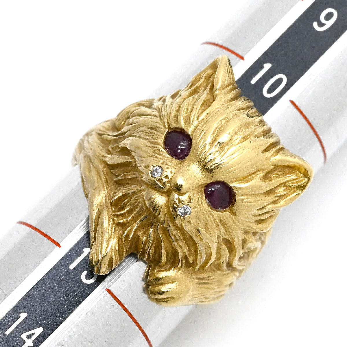 ノンブランド NON BRAND ルビー ダイヤリング イエローゴールド×レッド リング 指輪 キャット 猫モチーフ Au750 18K 18金 12号