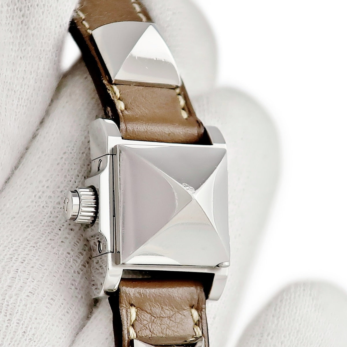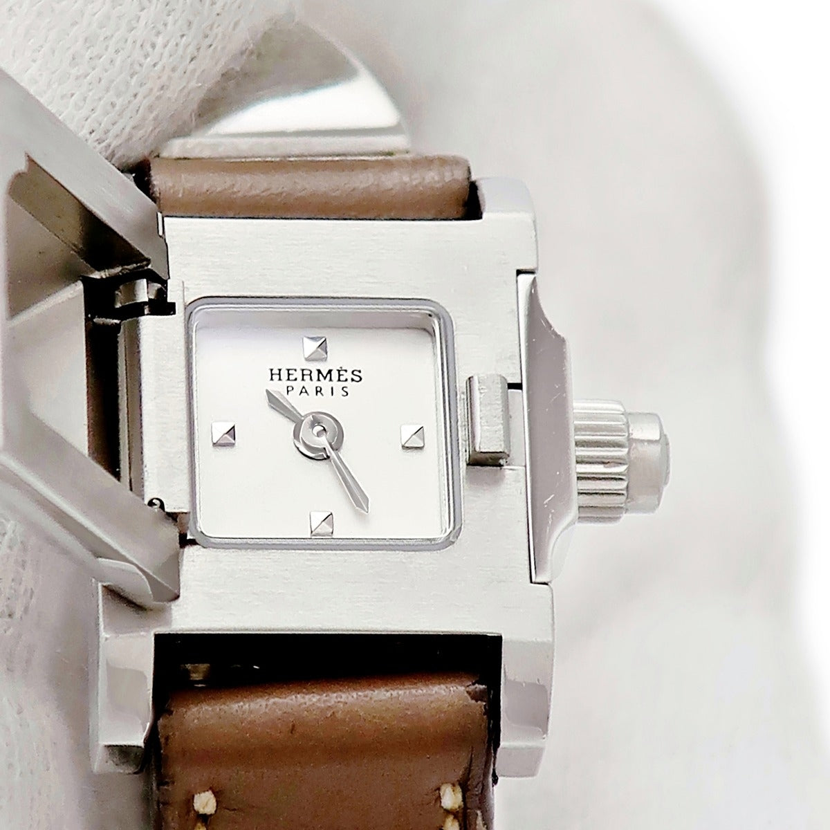 エルメス HERMES ミニメドール ドゥブルトゥール ME2.110 クオーツ レディース 角型 スタッズ 2連ブレス 横開き
