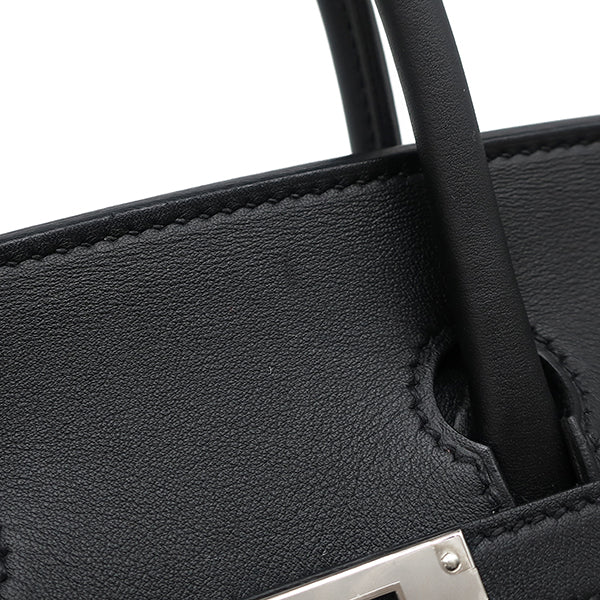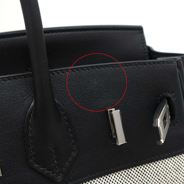 エルメス HERMES バーキン25 ブラック トワルアッシュ ヴォースイフト ハンドバッグ シルバー金具 黒 トワルH