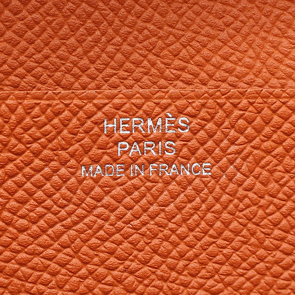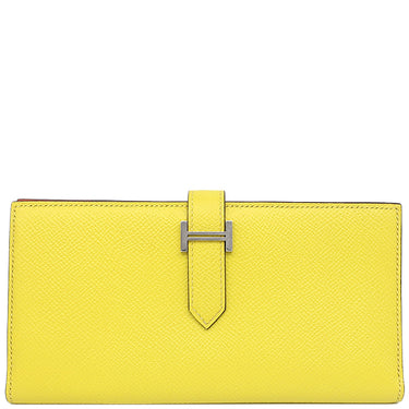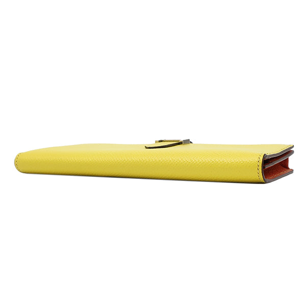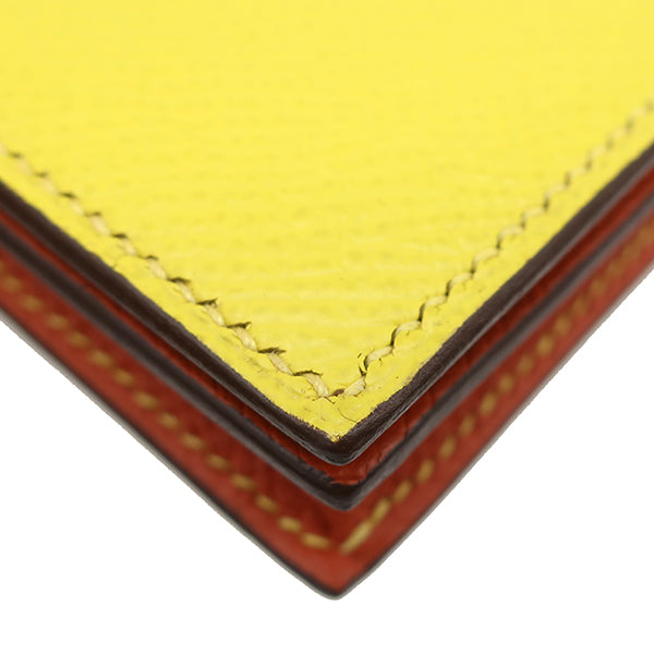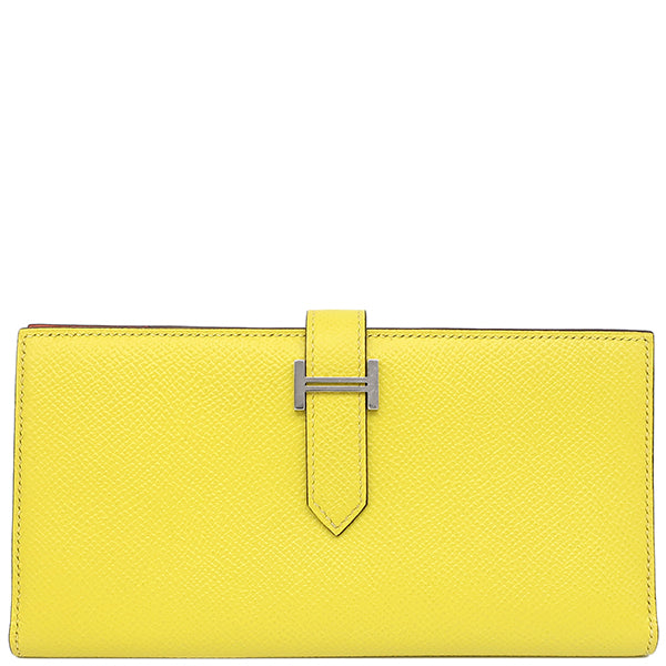 エルメス HERMES ベアンスフレ ヴェルソ ライム×テールバテュー ヴォーエプソン 長財布 シルバー金具 黄色 朱赤 バイカラー 二つ折財布