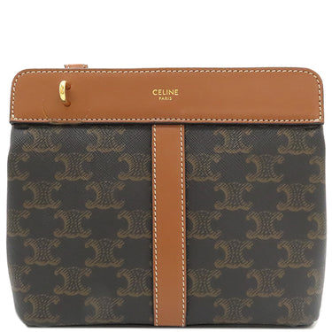 セリーヌ CELINE ティーン カバ ドゥ フランス 191992BZJ タン レザー トリオンフキャンバス ショルダーバッグ ゴールド金具 トリオンフ 黒 茶
