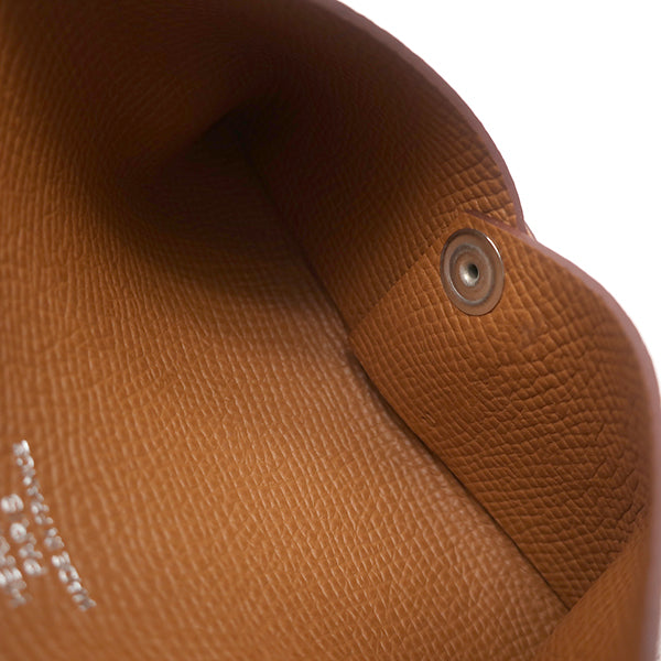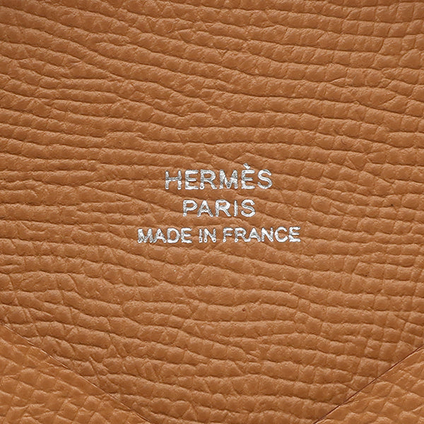 エルメス HERMES カルヴィ ゴールド ヴォーエプソン カードケース シルバー金具 茶
