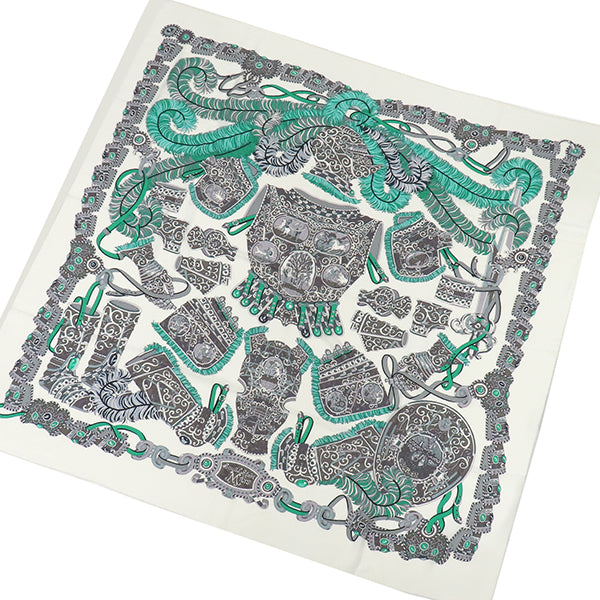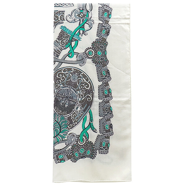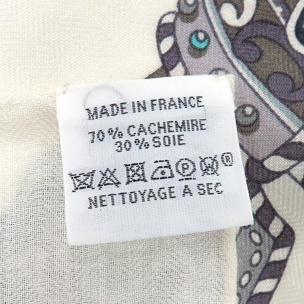 エルメス HERMES ショール カレ140 CARRE カレジェアン ホワイト×グリ×メンソール カシミヤ シルク ストール 【SOUS L'ÉGIDE DE MARS/軍神マルス】