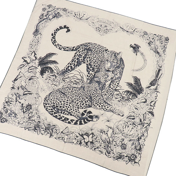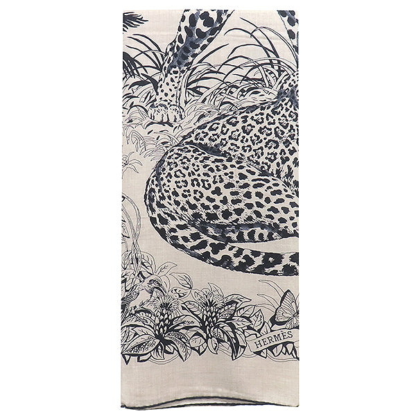 エルメス HERMES ショール カレ140 CARRE カレジェアン ベージュ×ブラック カシミヤ シルク ストール 【JUNGLE LOVE /ジャングルラブ】