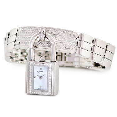 エルメス HERMES ケリーウォッチ KE4.131 クオーツ レディース 純正ダイヤ ホワイト シェル カデナ型 錠前 南京錠