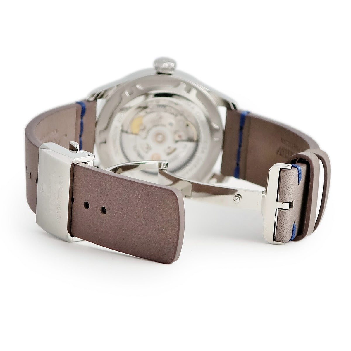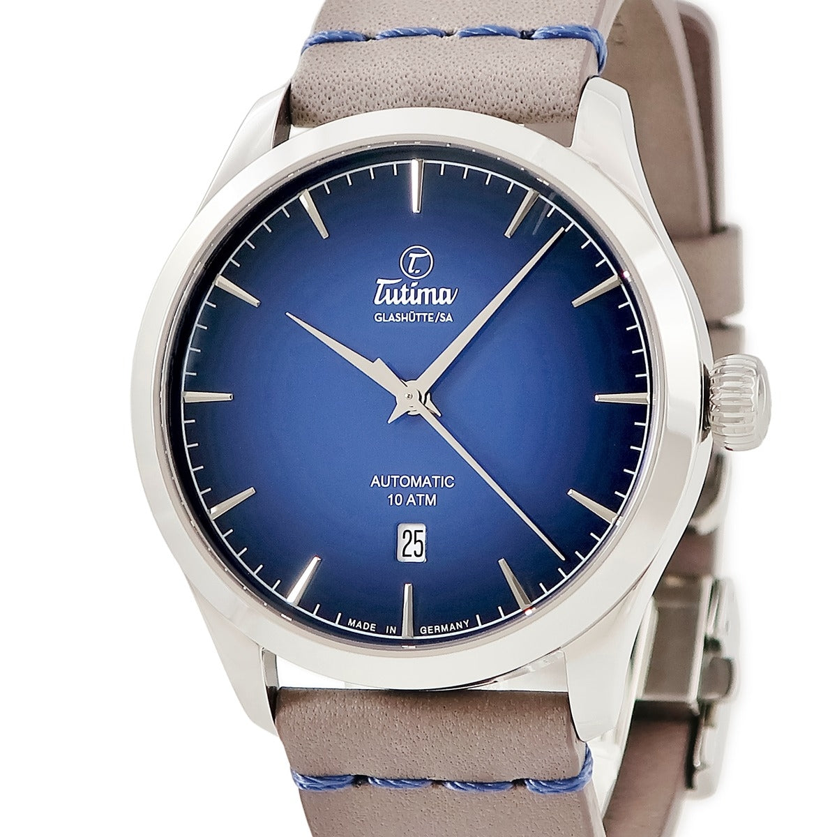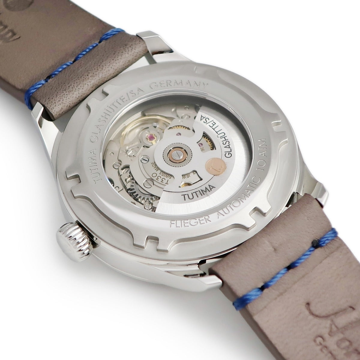チュチマ Tutima フリーガー エアロクラブ デイト 6105-53 自動巻き メンズ 新品同様 ダークブルー 青 バー シースルーバック