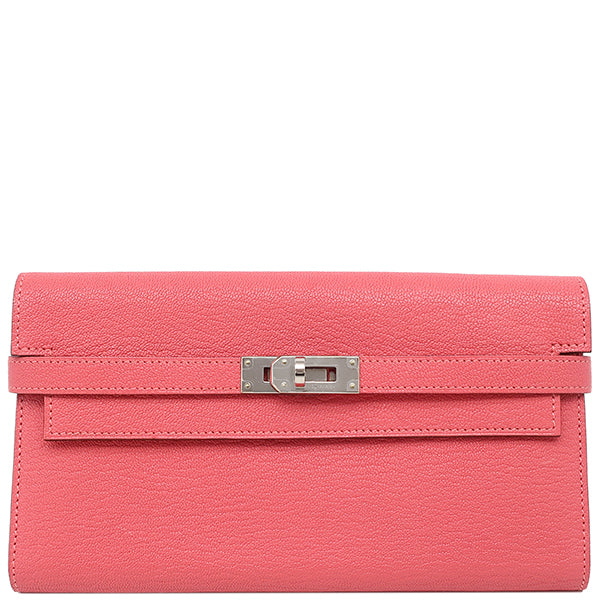 エルメス HERMES ケリーウォレット ロング ローズリップスティック シェーブル 長財布 シルバー金具