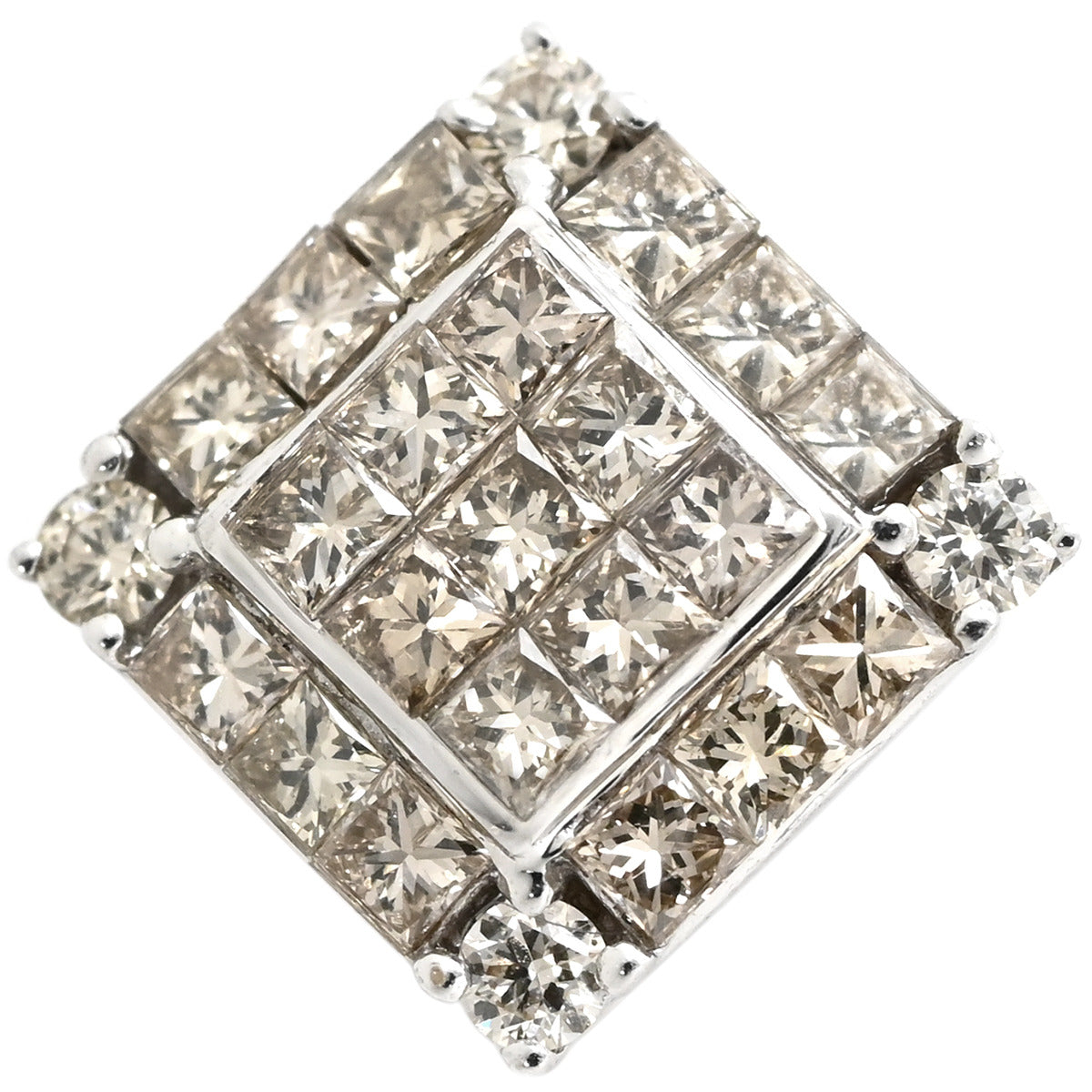 ノンブランド NON BRAND ホワイトゴールド K18WG ダイヤモンド ペンダントトップ Au750 18K 18金 ペンダントヘッド ミステリーセッティングダイヤ スクエア キューブ