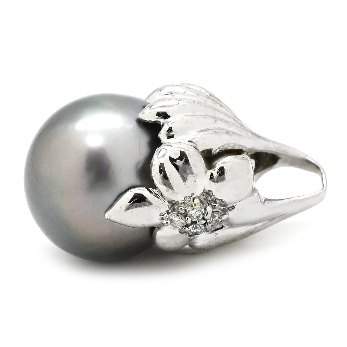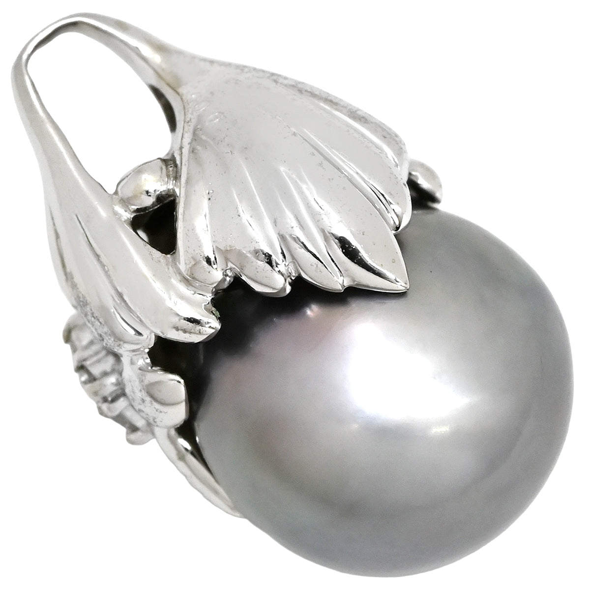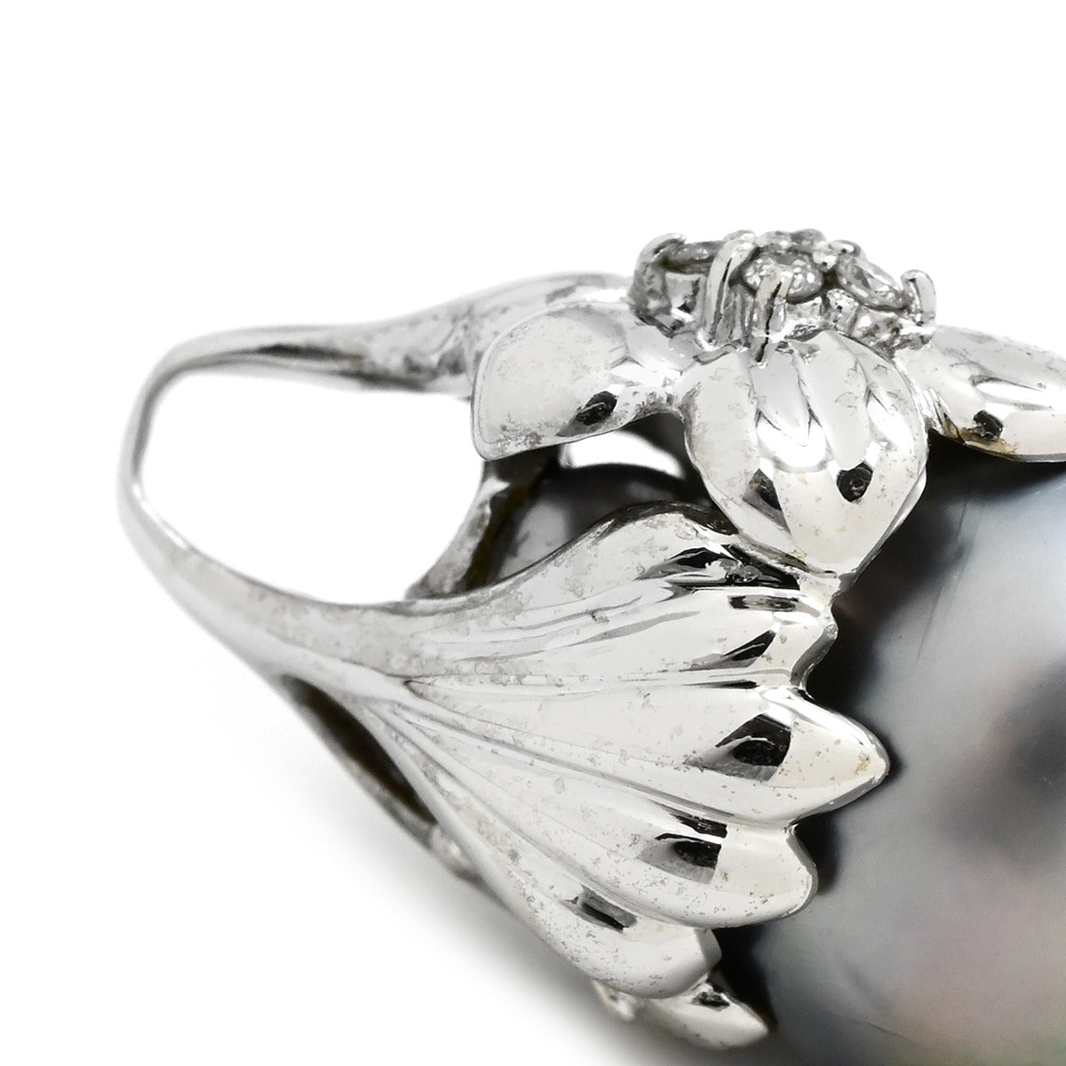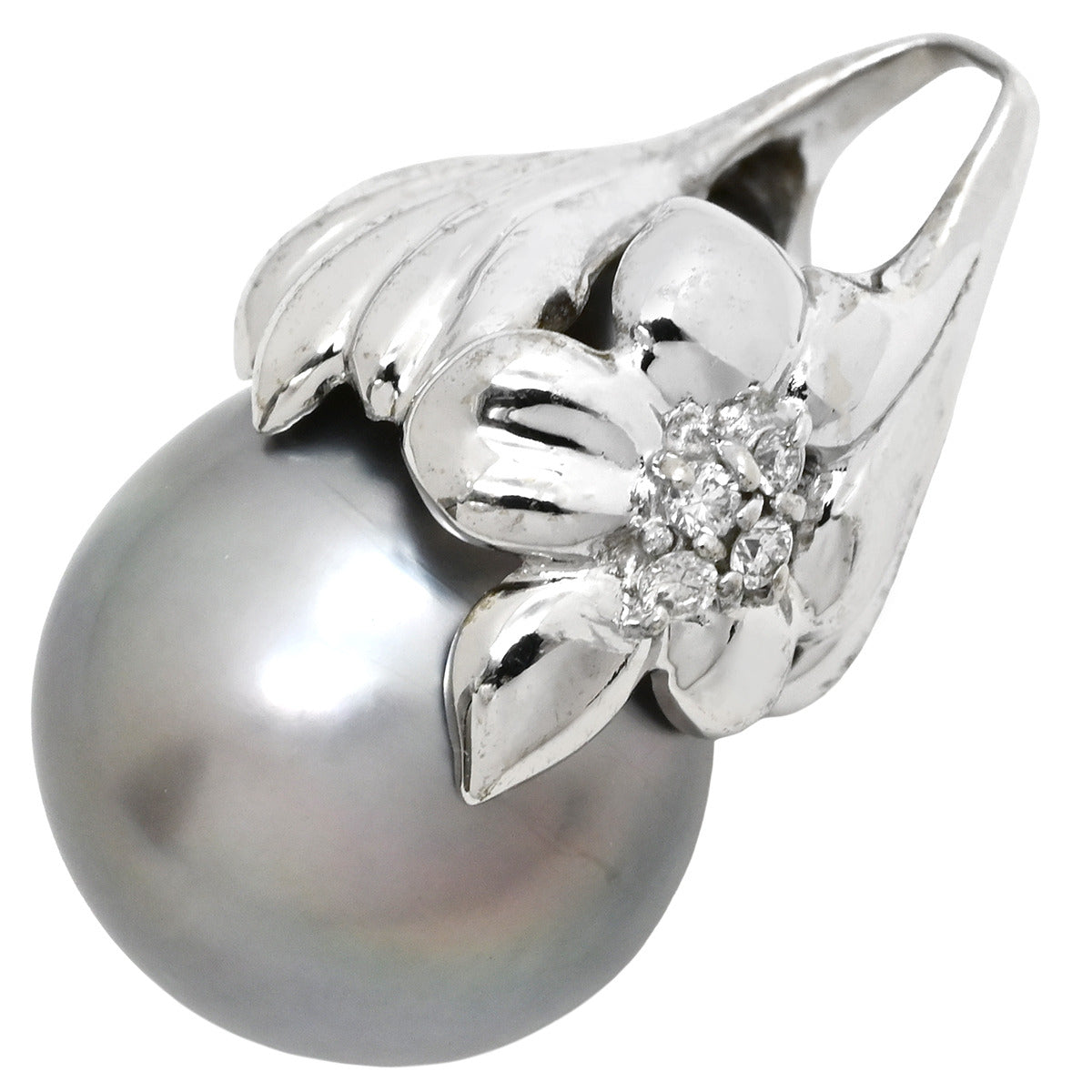 ノンブランド NON BRAND 黒蝶パール ダイヤ ホワイトゴールド K14WG ダイヤモンド ペンダントトップ シルバー