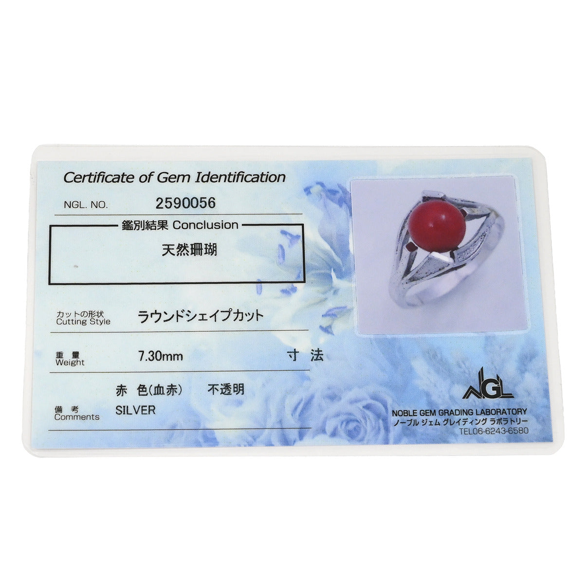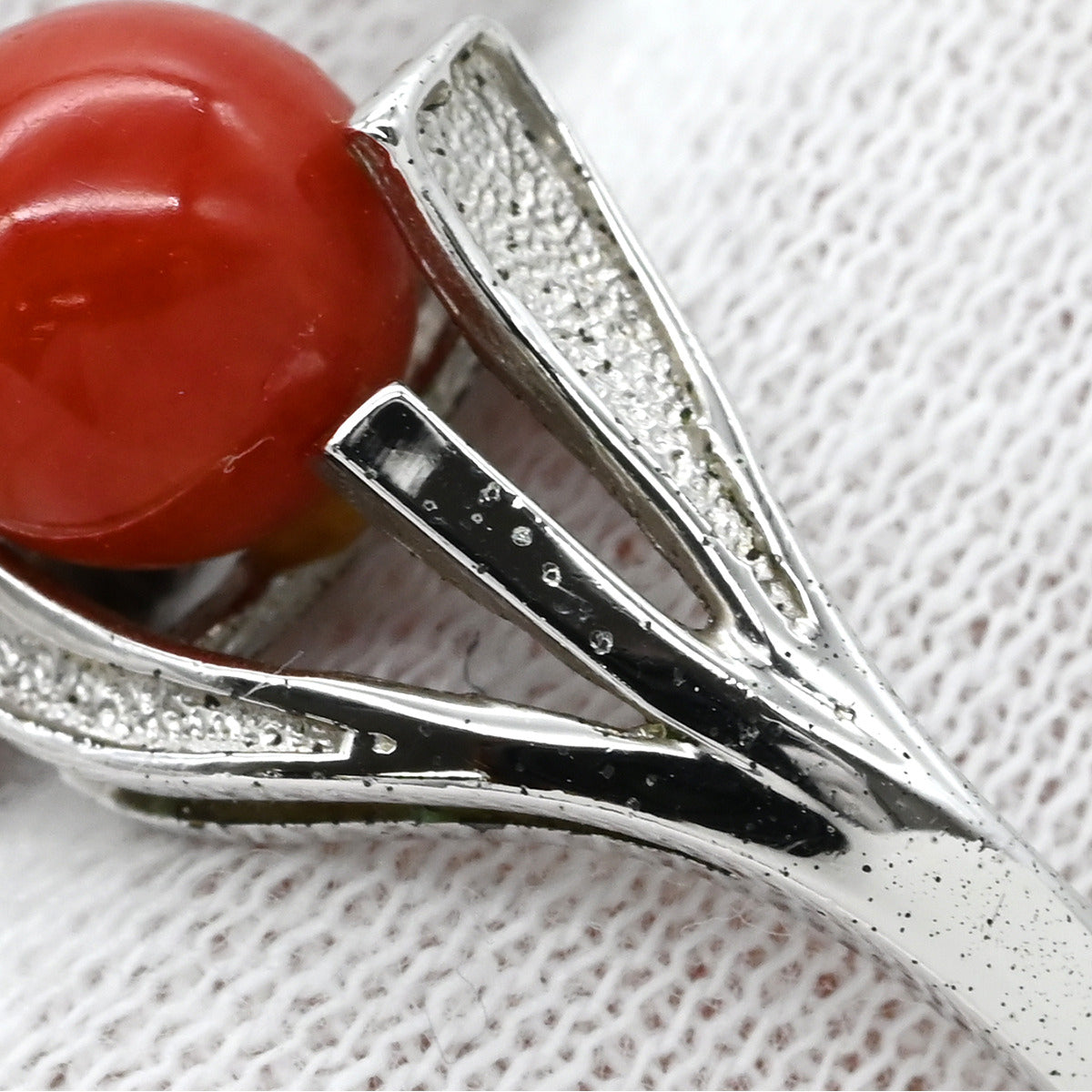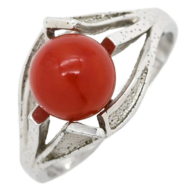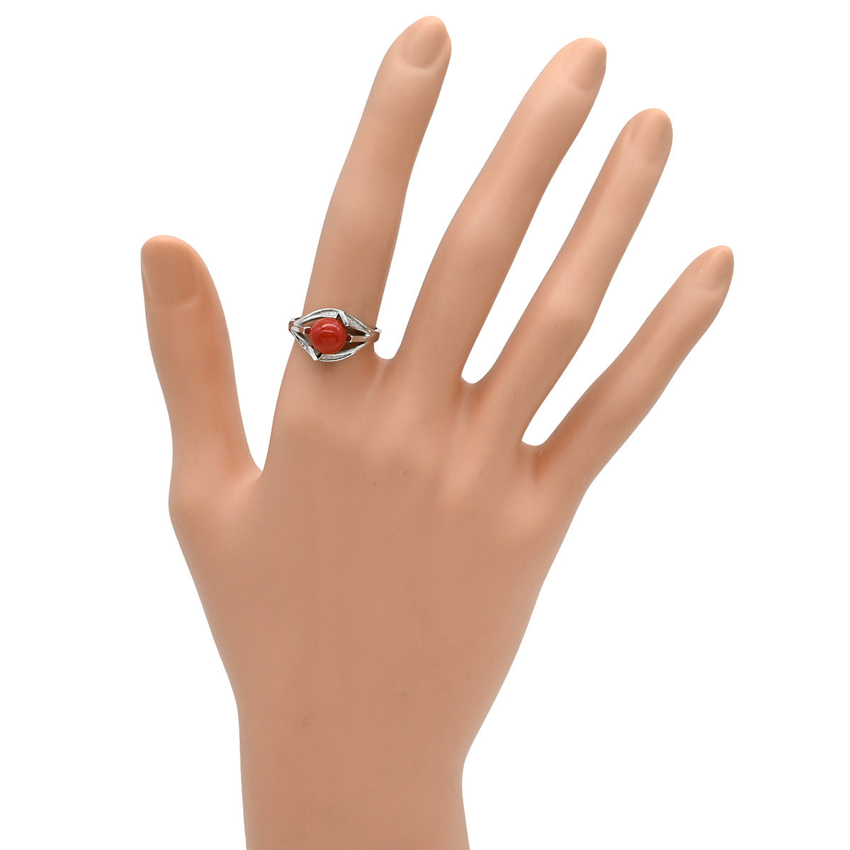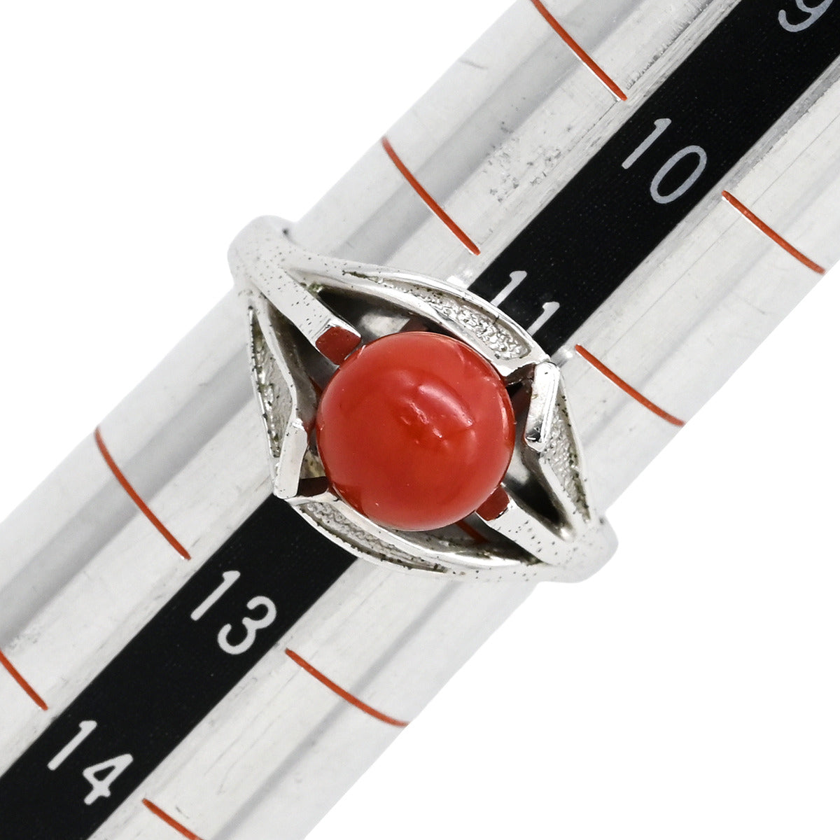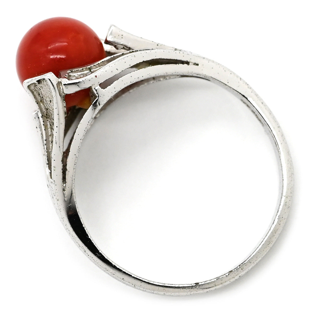 ノンブランド NON BRAND 珊瑚 ダイヤリング プラチナシルバー リング 指輪 赤 サンゴ 12号