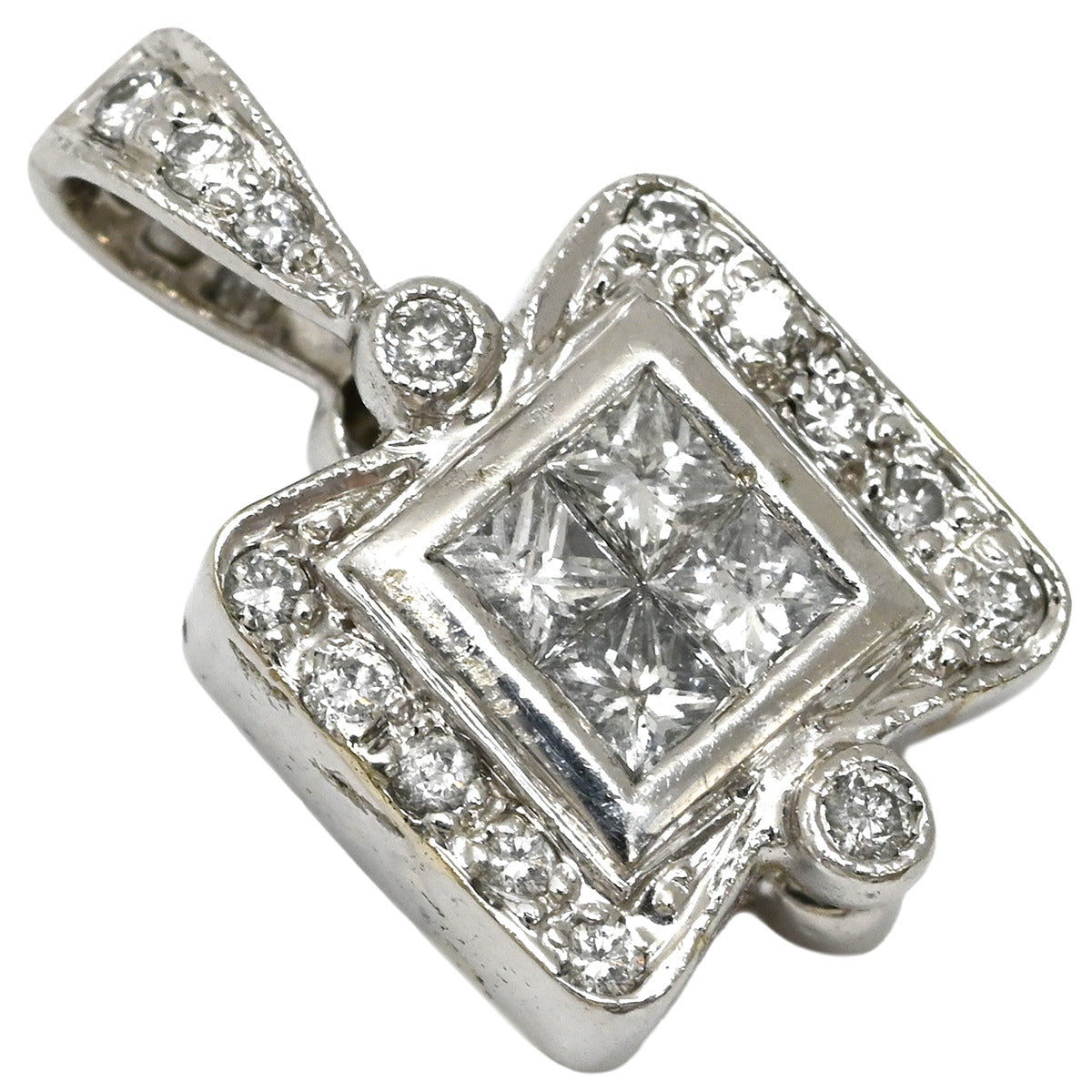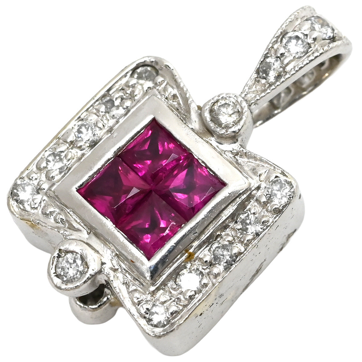 ノンブランド NON BRAND ルビー ダイヤ プラチナシルバー ペンダントトップ 赤 レッド スクエアカット