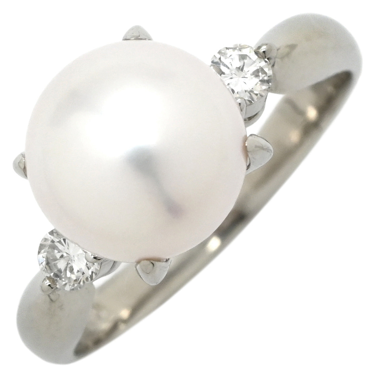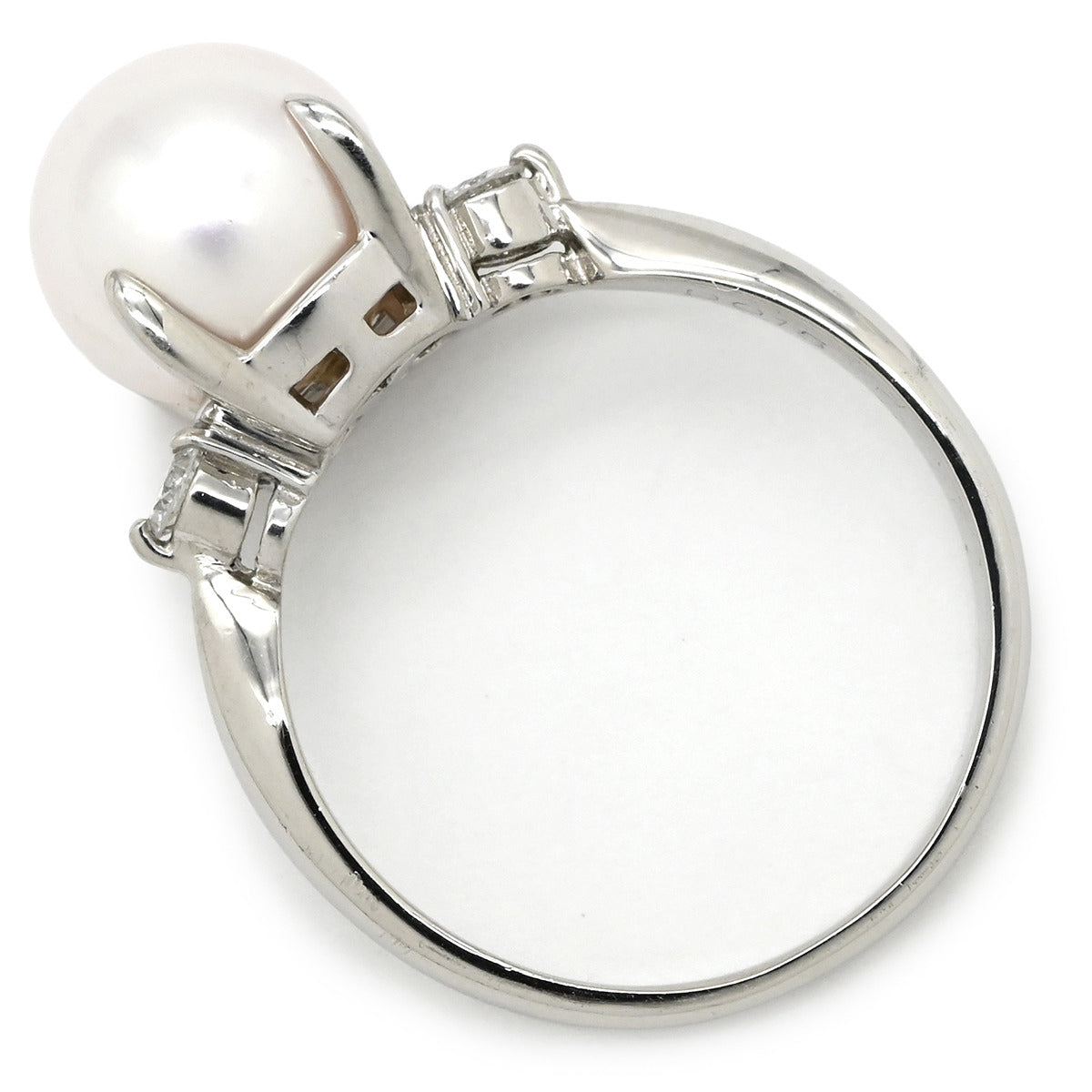 ノンブランド NON BRAND ホワイト×プラチナシルバー Pt900 パール ダイヤモンド リング 指輪 プラチナム 1P 1粒 パール 真珠 あこや アコヤ ダイヤ 12号