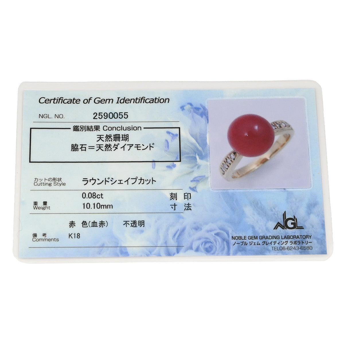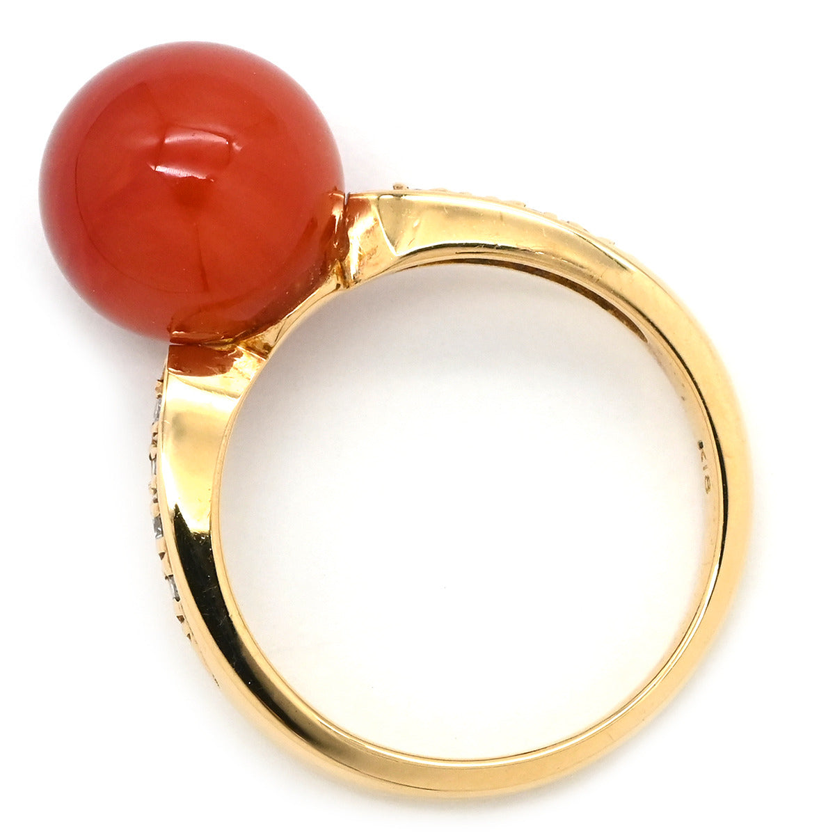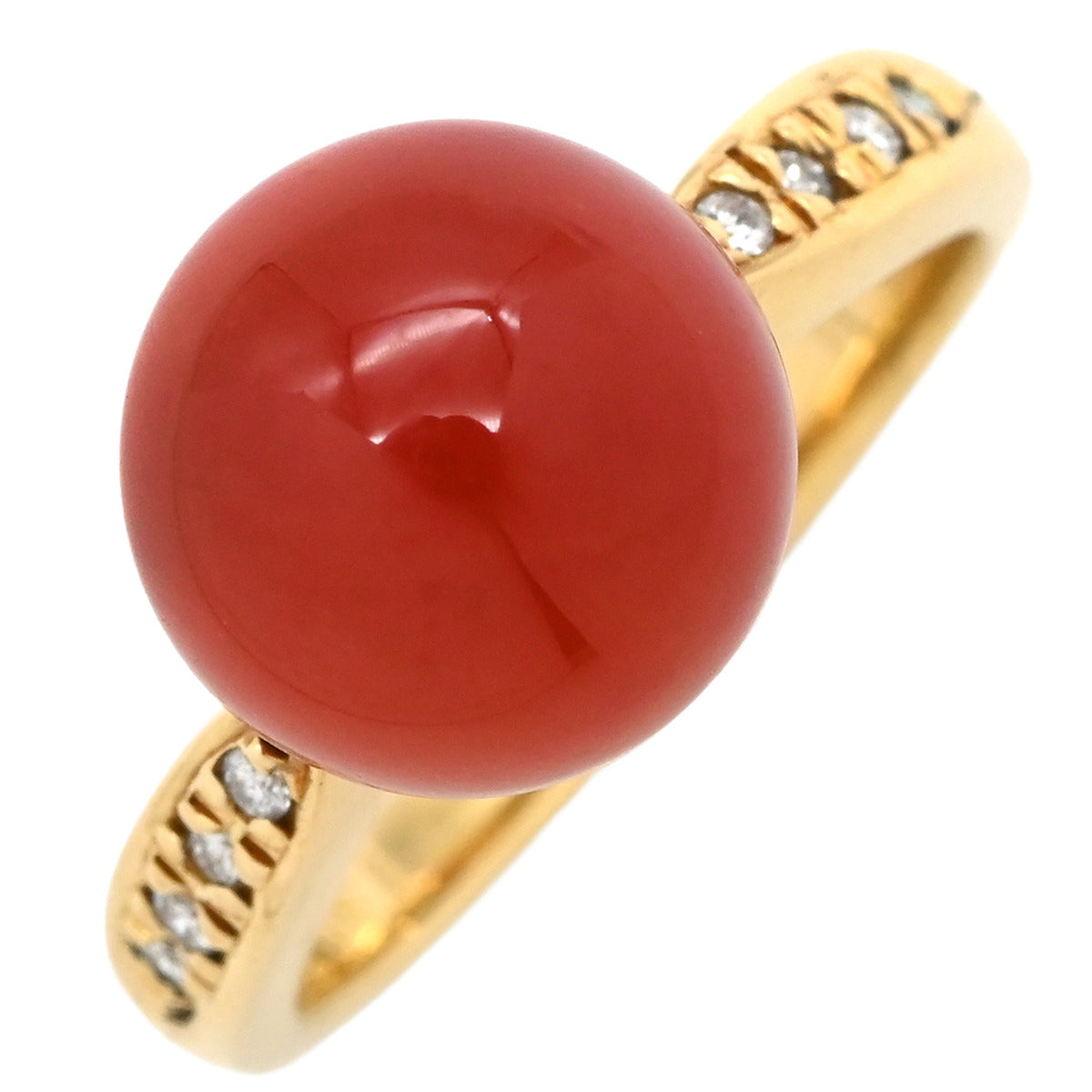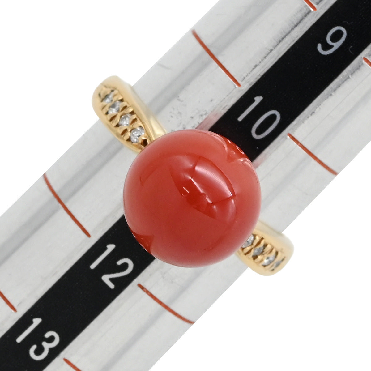 ノンブランド NON BRAND 珊瑚 ダイヤリング イエローゴールド リング 指輪 サンゴ 11号