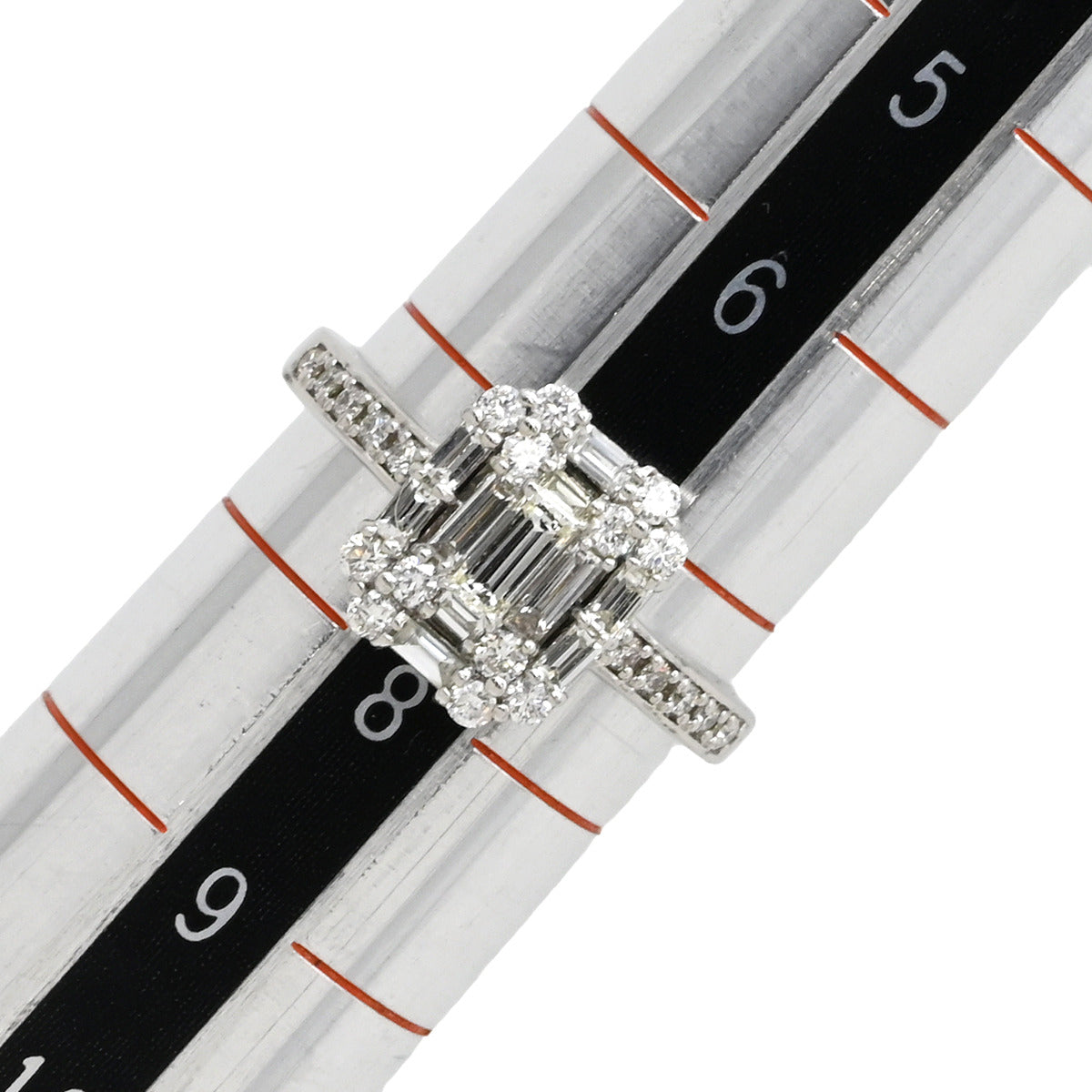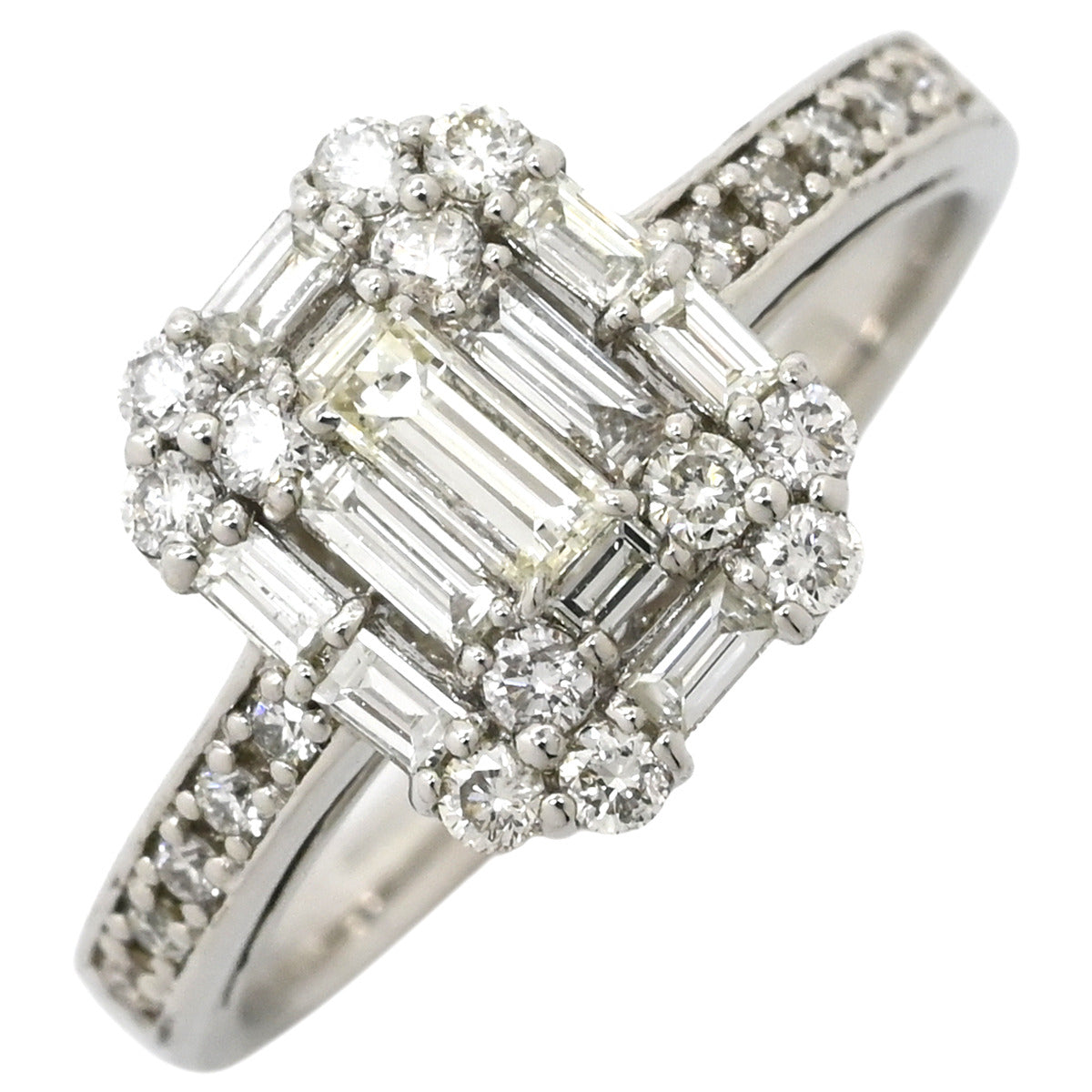 ノンブランド NON BRAND バゲットカット パヴェリング プラチナシルバー リング 指輪 ダイヤリング 7.5号