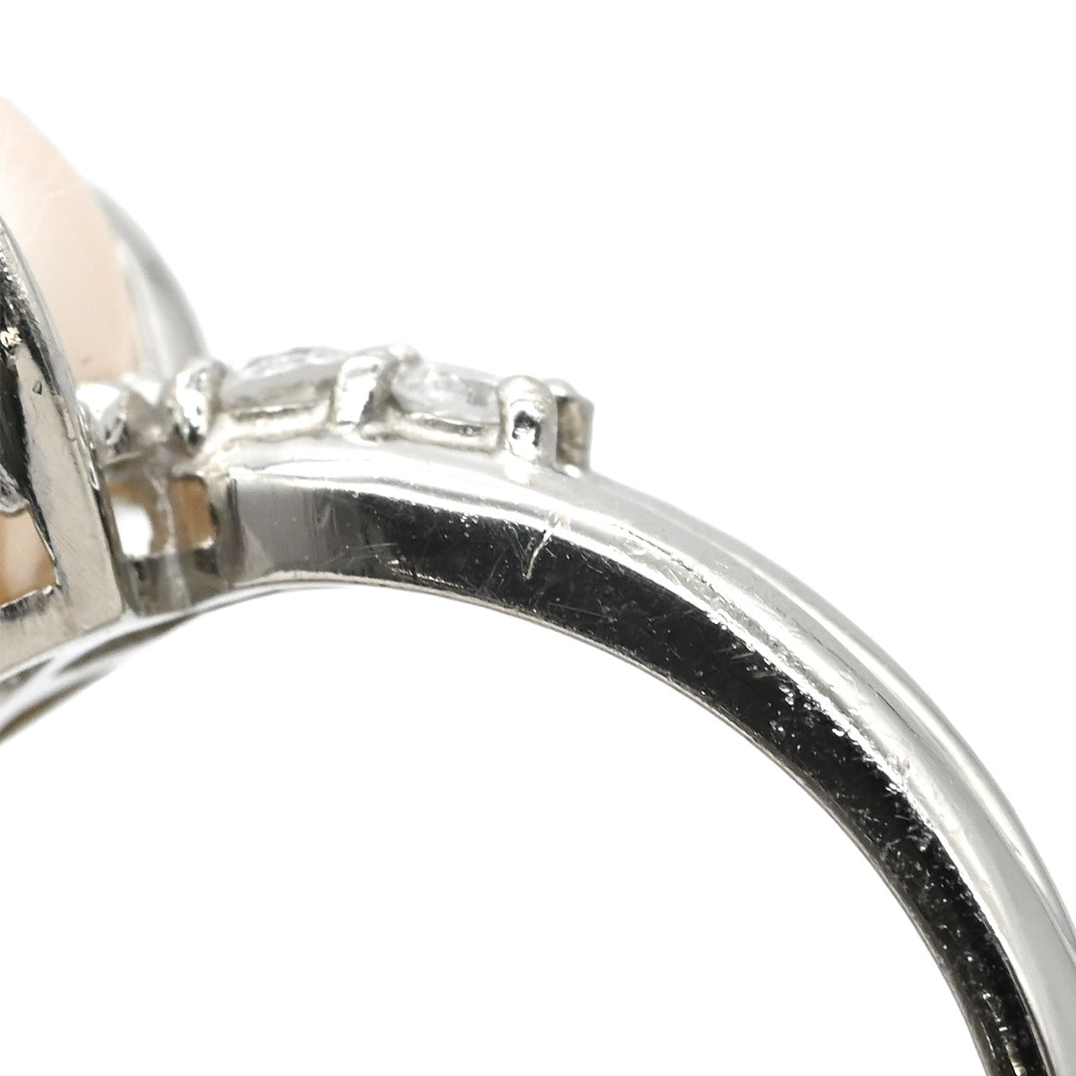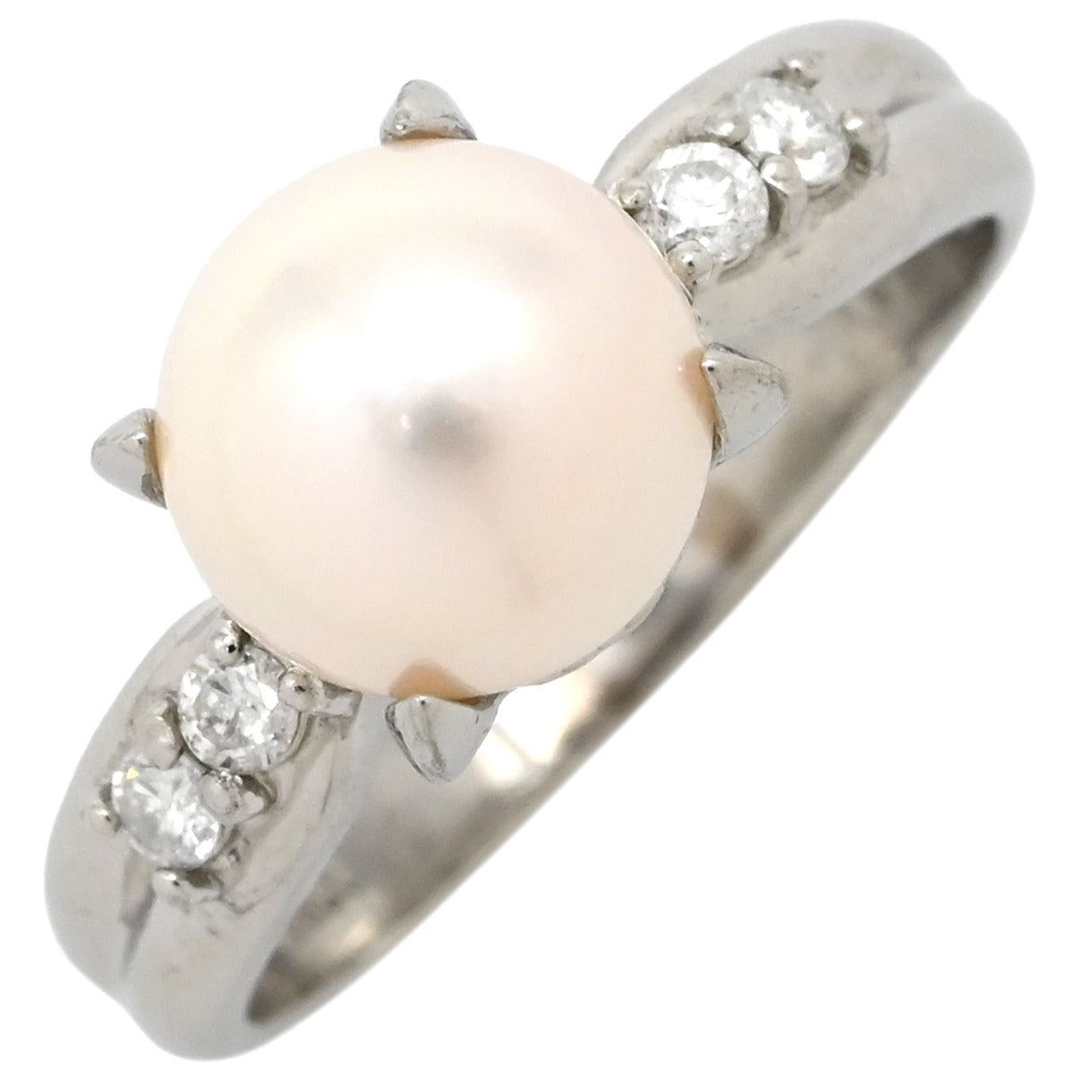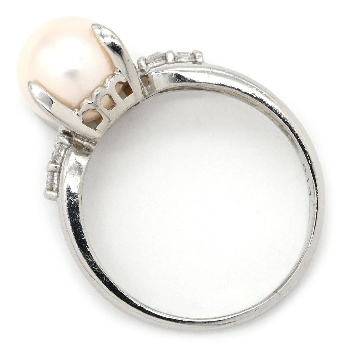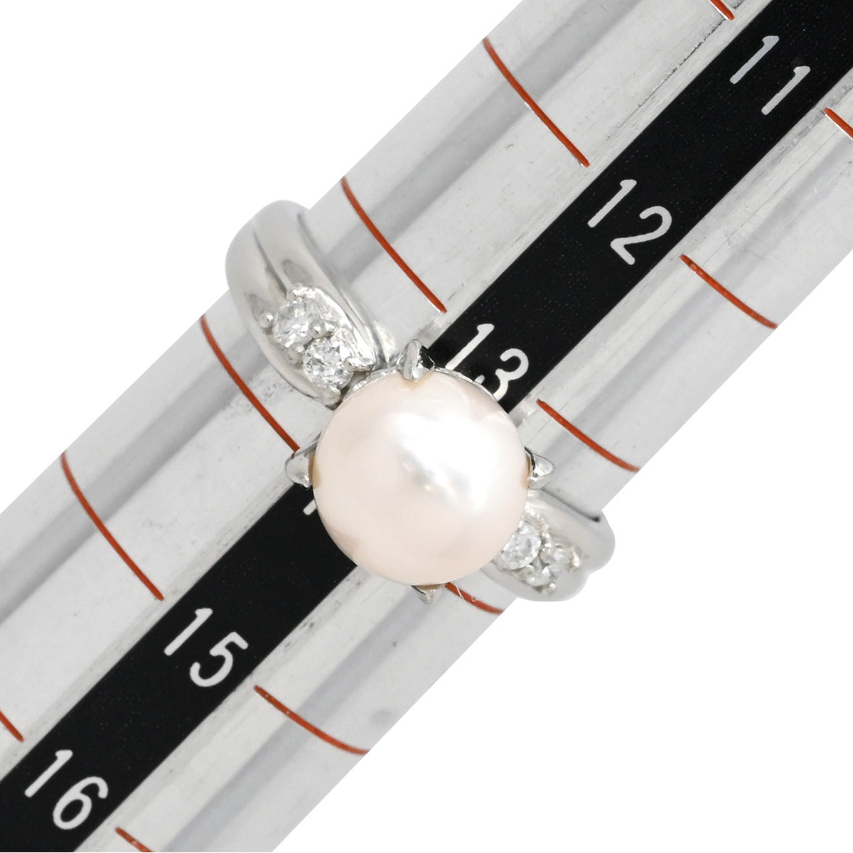 ノンブランド NON BRAND ホワイト×プラチナシルバー Pt900 パール ダイヤモンド リング 指輪 プラチナム 1P 1粒 パール 真珠 あこや アコヤ ダイヤ 13.5号