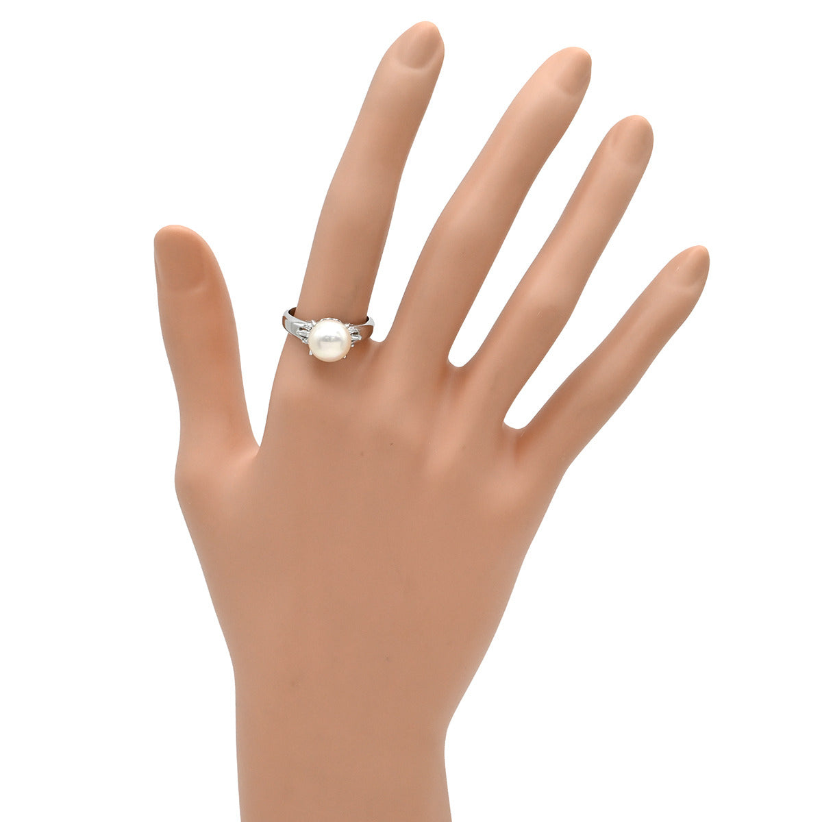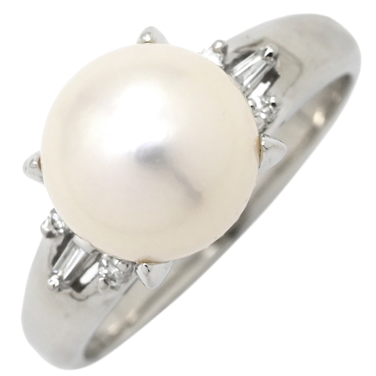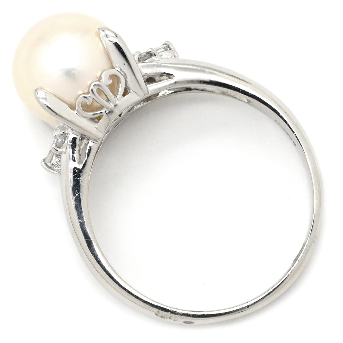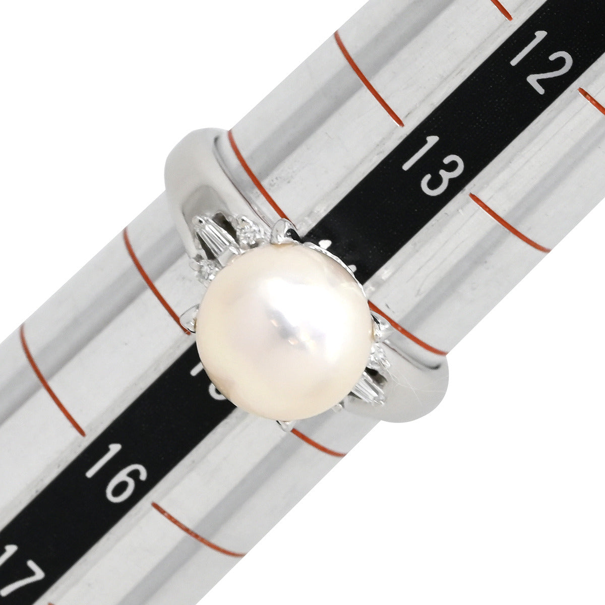 ノンブランド NON BRAND ホワイト×プラチナシルバー Pt900 パール ダイヤモンド リング 指輪 プラチナム 1P 1粒 パール 真珠 あこや アコヤ ダイヤ 14.5号