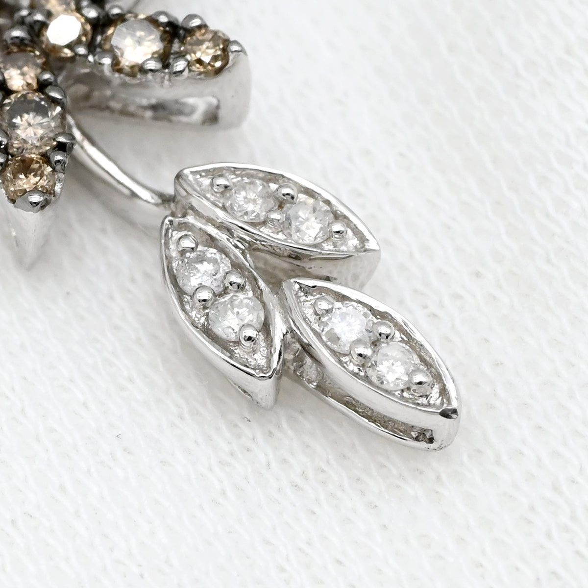 ノンブランド NON BRAND ホワイトゴールド K18WG ダイヤモンド ペンダントトップ Au750 18K 18金 ネックレストップ ブラウン ダイヤ フラワーモチーフ